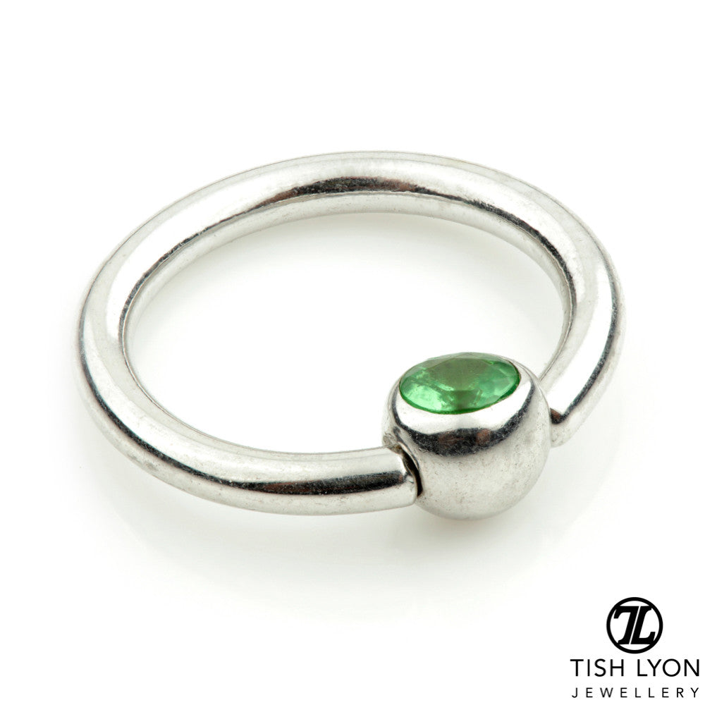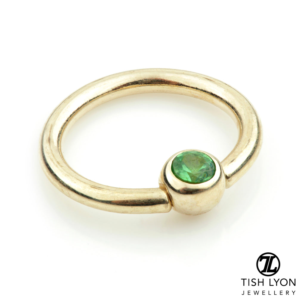 TISH LYON® 14ct Gold Jewelled Ball Closure Ring - 1.2mm Emerald (Classification: Grade A) - Facet cut 2mm Size: 1.2mm x 8mm Ball Size: 3mm Yellow or White Gold For Nose, Cartilage, Tragus, etc Suitable for initial piercing (autoclave on coolest heat)