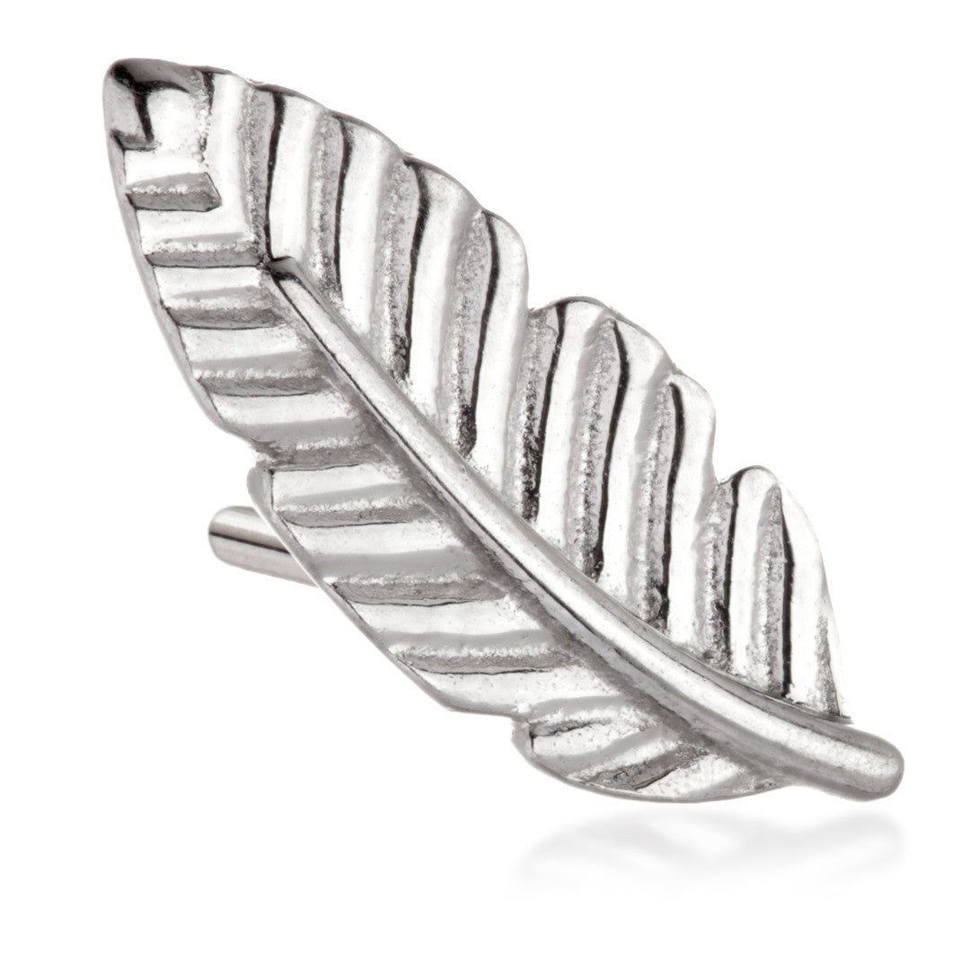 TISH LYON 14ct Gold Feather Pin Attachment Attachment Size: Length 10mm Width 4mm Gold Colour: Yellow or White 316L Surgical Steel Pin Packaged in small grey presentation box Suitable for initial piercing