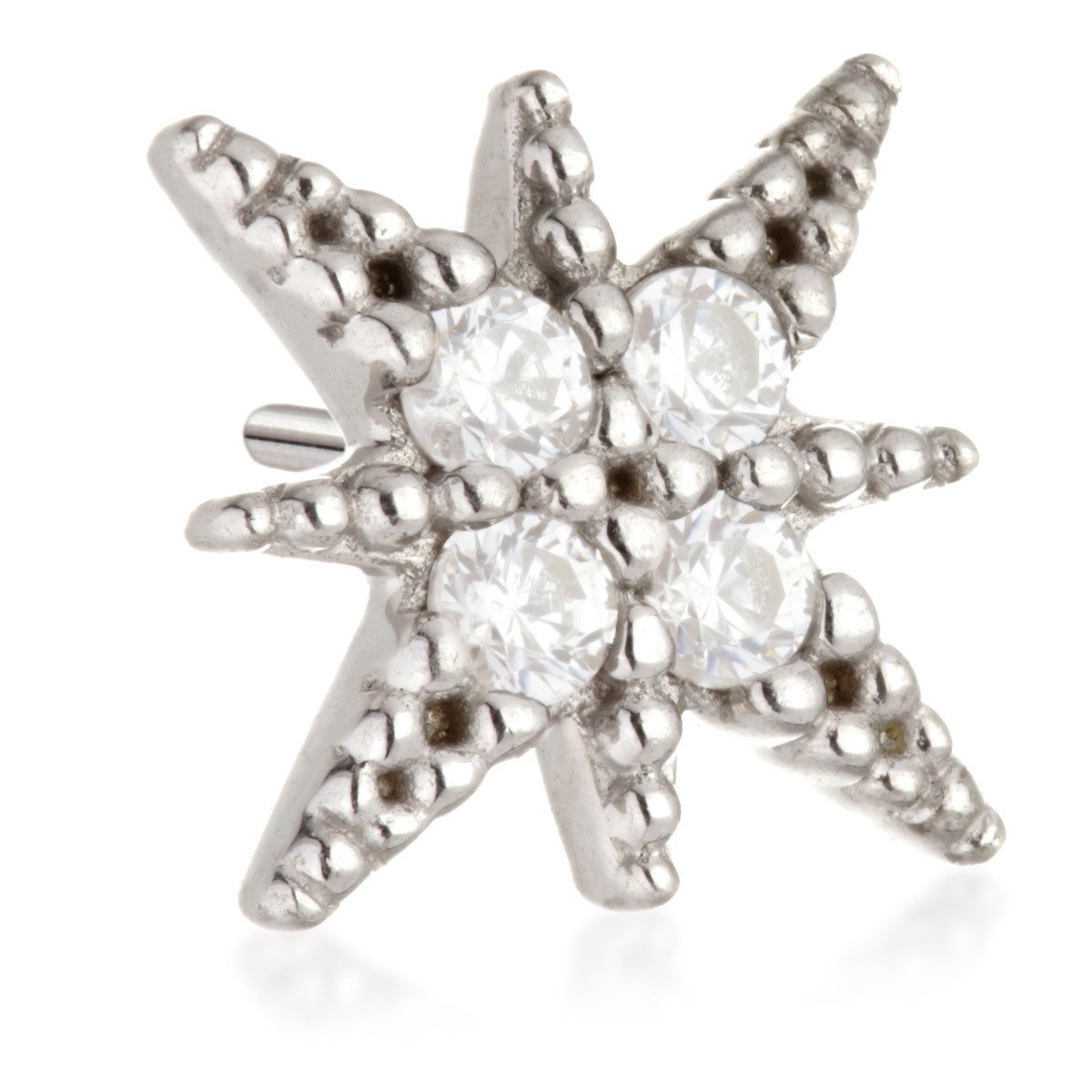 TISH LYON® 14ct Gold Gem North Star Pin Attachment Attachment Size: 7mm Gold Colour: Yellow or White Gem Colour: Crystal 316L Surgical Steel Pin Suitable for initial piercing