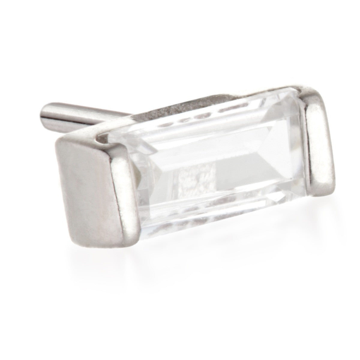 TISH LYON ® 14ct Gold Rectangle Gem Pin Attachment </p> Attachment Size: Length 3mm Width 1mm </br> Gold Colour: Yellow or White </br> Gem Colour: Crystal </br> 316L Surgical Steel Pin </br> Packaged in small grey presentation box </br> Suitable for initial piercing