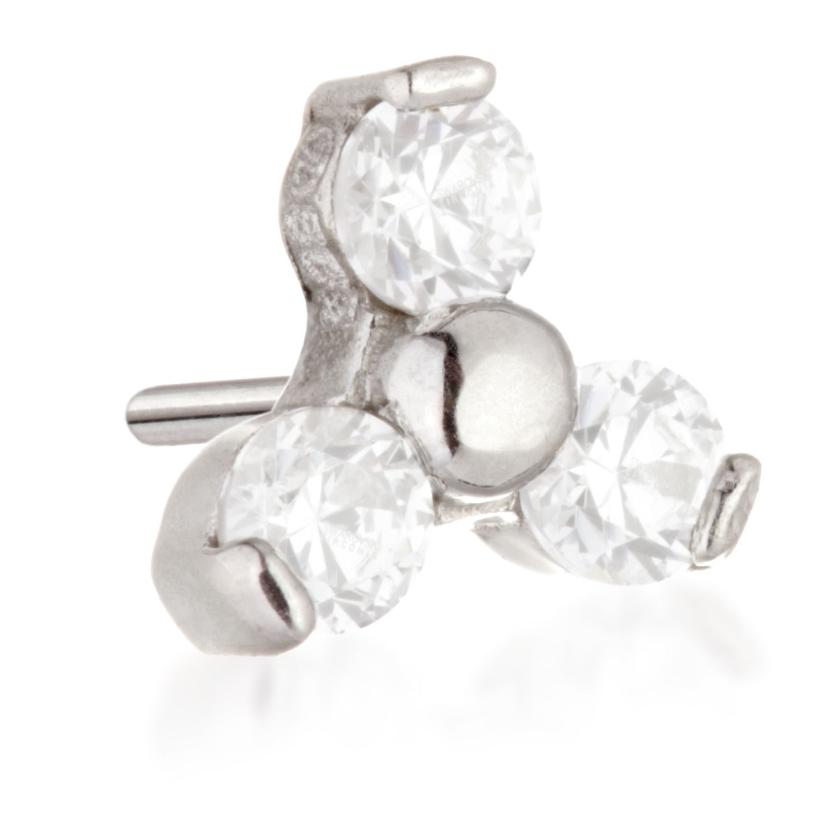 TISH LYON ® 14ct Gold Trinity Gem Pin Attachment </p> Attachment Size: 3.5mm</br> Gold Colour: Yellow or White </br> Gem Colour: Crystal </br> 316L Surgical Steel Pin </br> Packaged in small grey presentation box </br> Suitable for initial piercing [only for 14ct and 18ct]