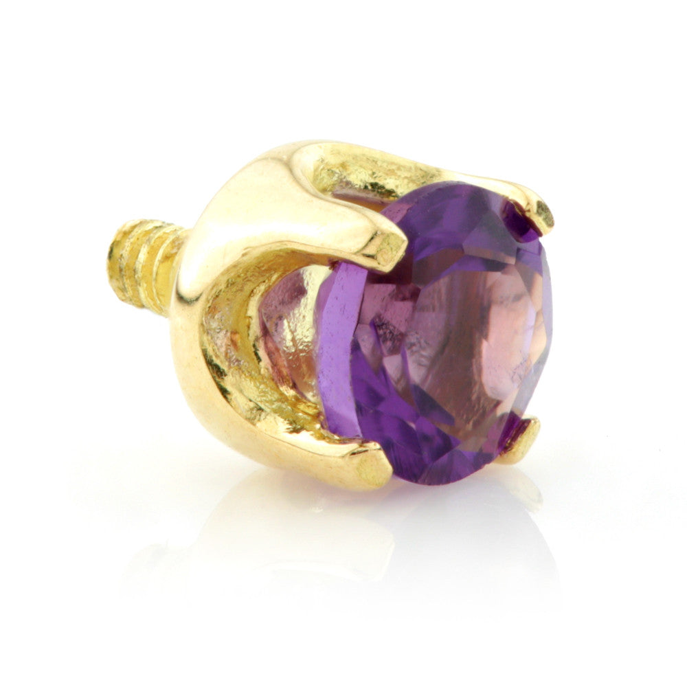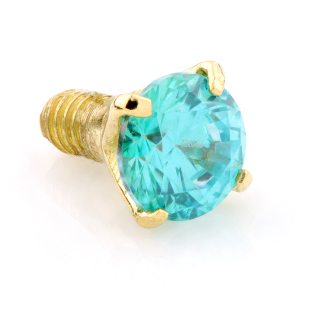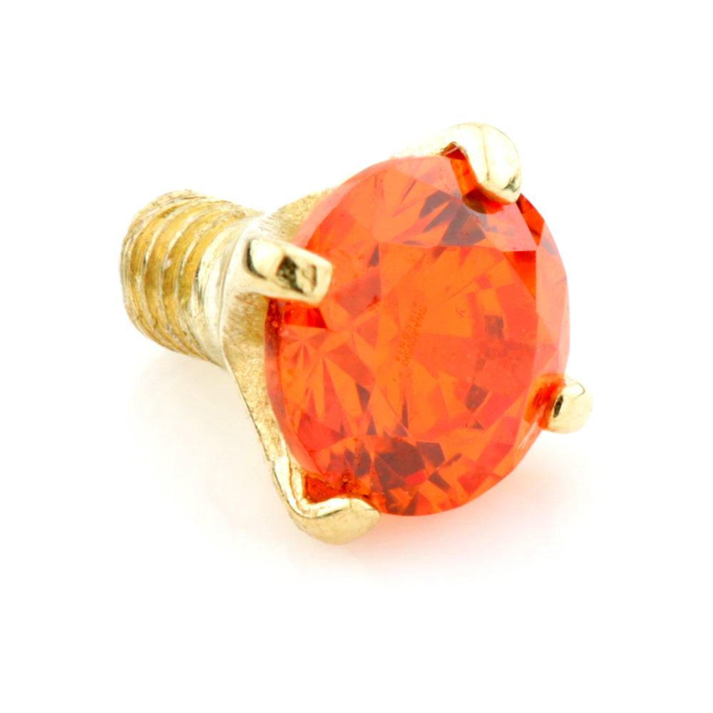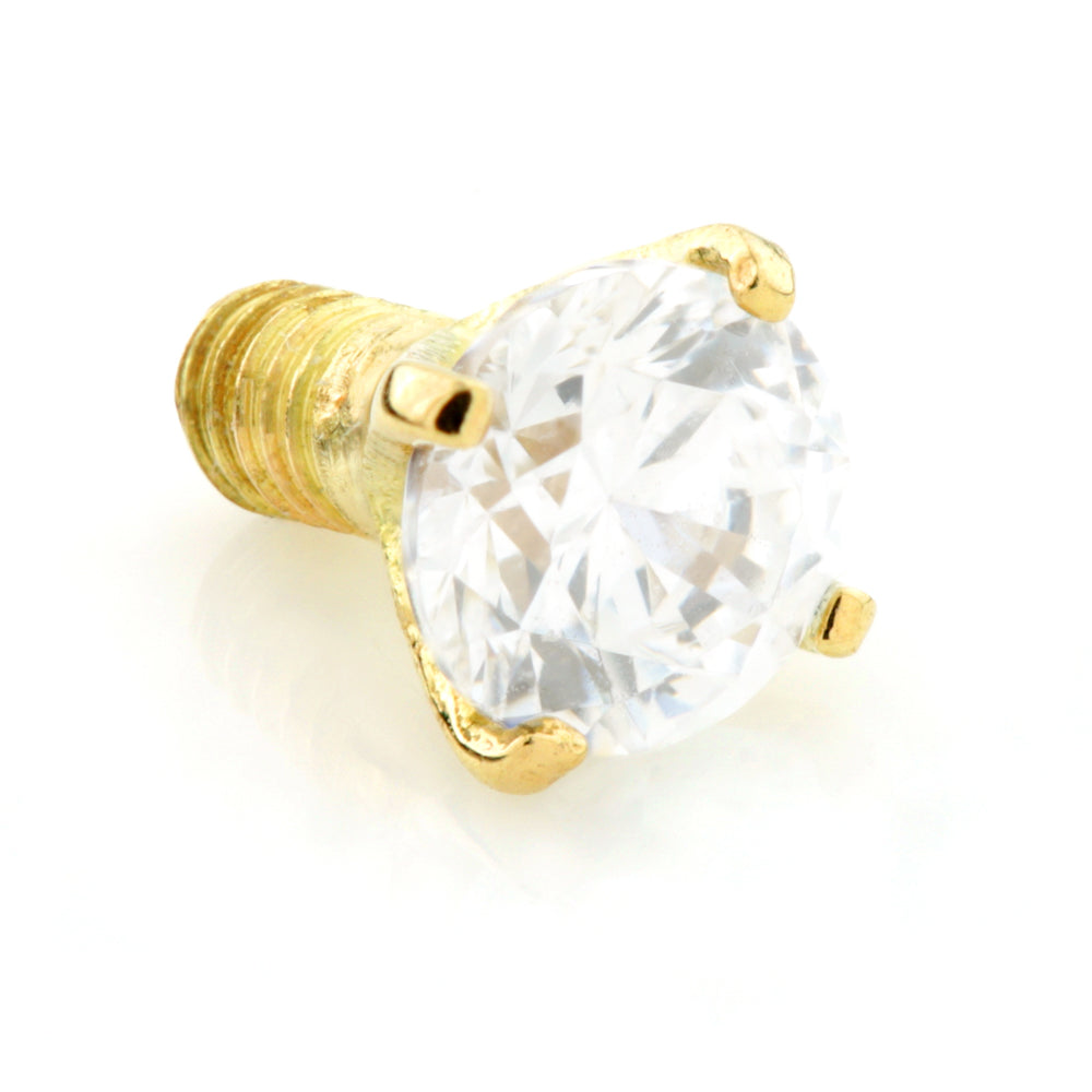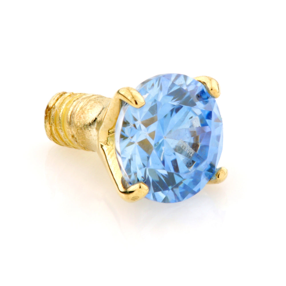 TISH LYON® 18K Internal Prong Set Gem Attachment Gold Colour: Yellow To fit iLabBase or TL18Q16 Gem Size: 2.5mm 0.8mm Internal Thread / 1.2mm Bar (European Internal) CR To fit 1.6mm Internal Jewellery 1.2mm Internal / 1.6mm Bar Gem Colour: CR, BL, BZ, OR, PK, RD Suitable for initial piercing