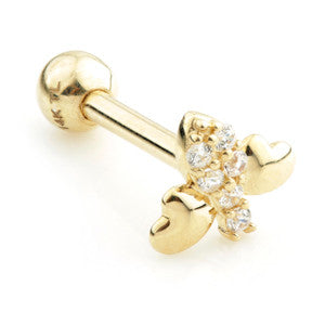 TISH LYON® Gold Jewelled Bee Microbar 9ct Gold Cartilage Ear BarColour: Yellow or WhiteSizes: 1.2mm x 8mm (3mm ball)Round CZ:: 1mm x 6 Laser Mark