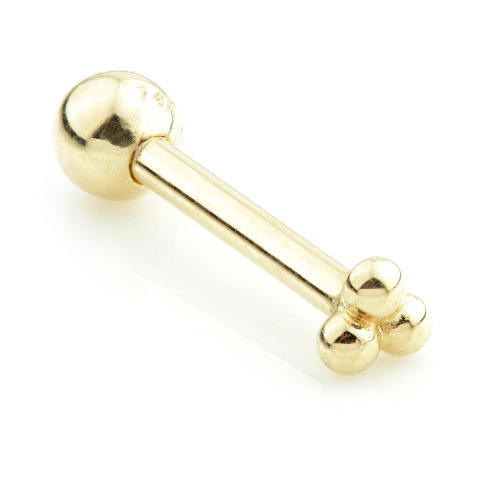 TISH LYON® Gold Tri Dot Microbar 9ct Gold Cartilage Ear BarColour: White or Yellow GoldSizes: 1.2mm x 8mm (3mm ball)Dots: 1.5mm Laser Mark