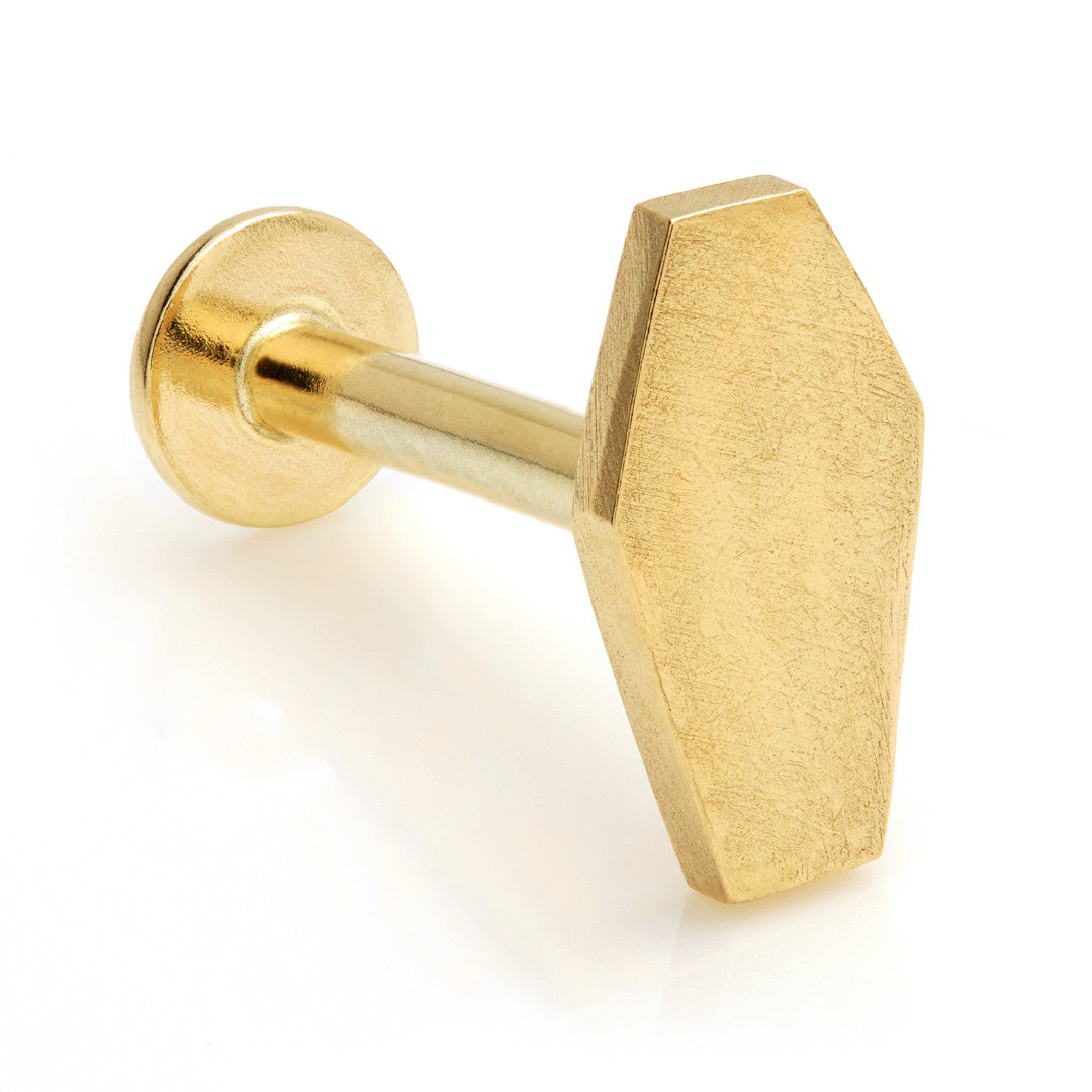 TISH LYON® 9ct Internal Thread Labret Sizes: 1.2mm x 6mm or 8mm Base Plate: 3mm Gold Colour: Yellow Ideal for tragus and helix.