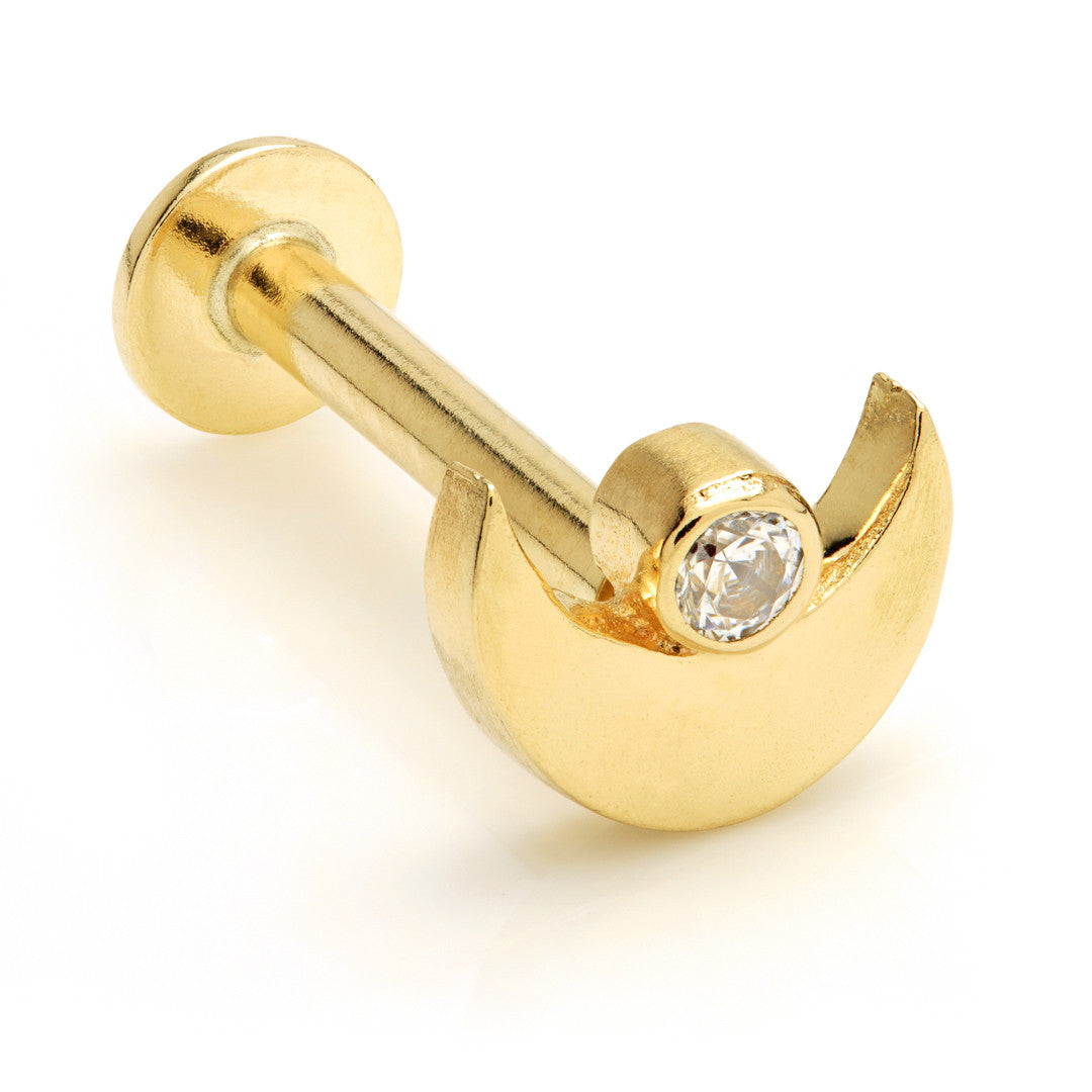 TL - 9ct Gold Crescent Moon With Gem Internal Labret