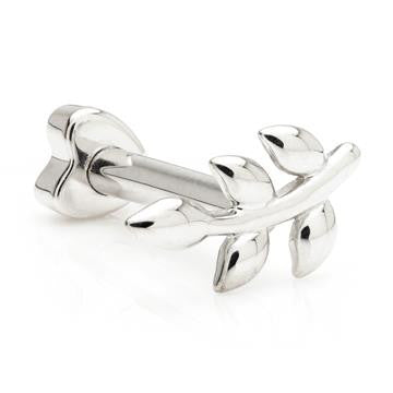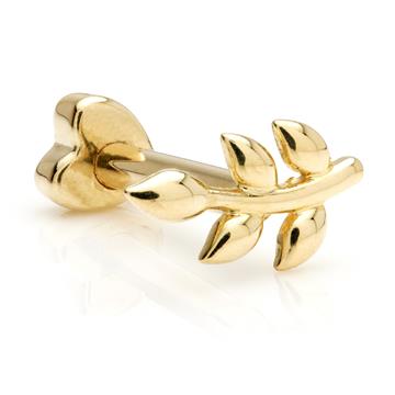 TISH LYON® 9ct External Threaded Microbar with Fixed Leaf and Screw on Heart Back Gauge: 1.2mm Size: 6mm / 8mm Leaf Size: 7mm Heart Attachment Size: 3mm Gold Colour: W / Y
