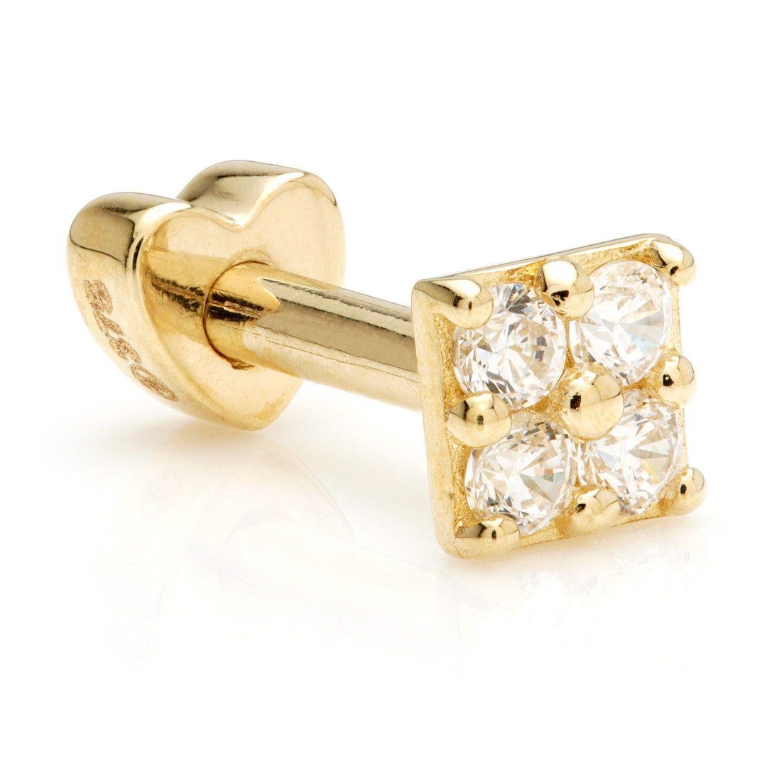 TL - 9ct Gold Fixed Quad Gem Square Microbar with Screw on Heart Back