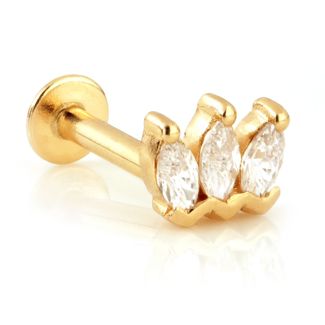 TL - 9ct Gold Triple Marquise Jewelled Internal Labret