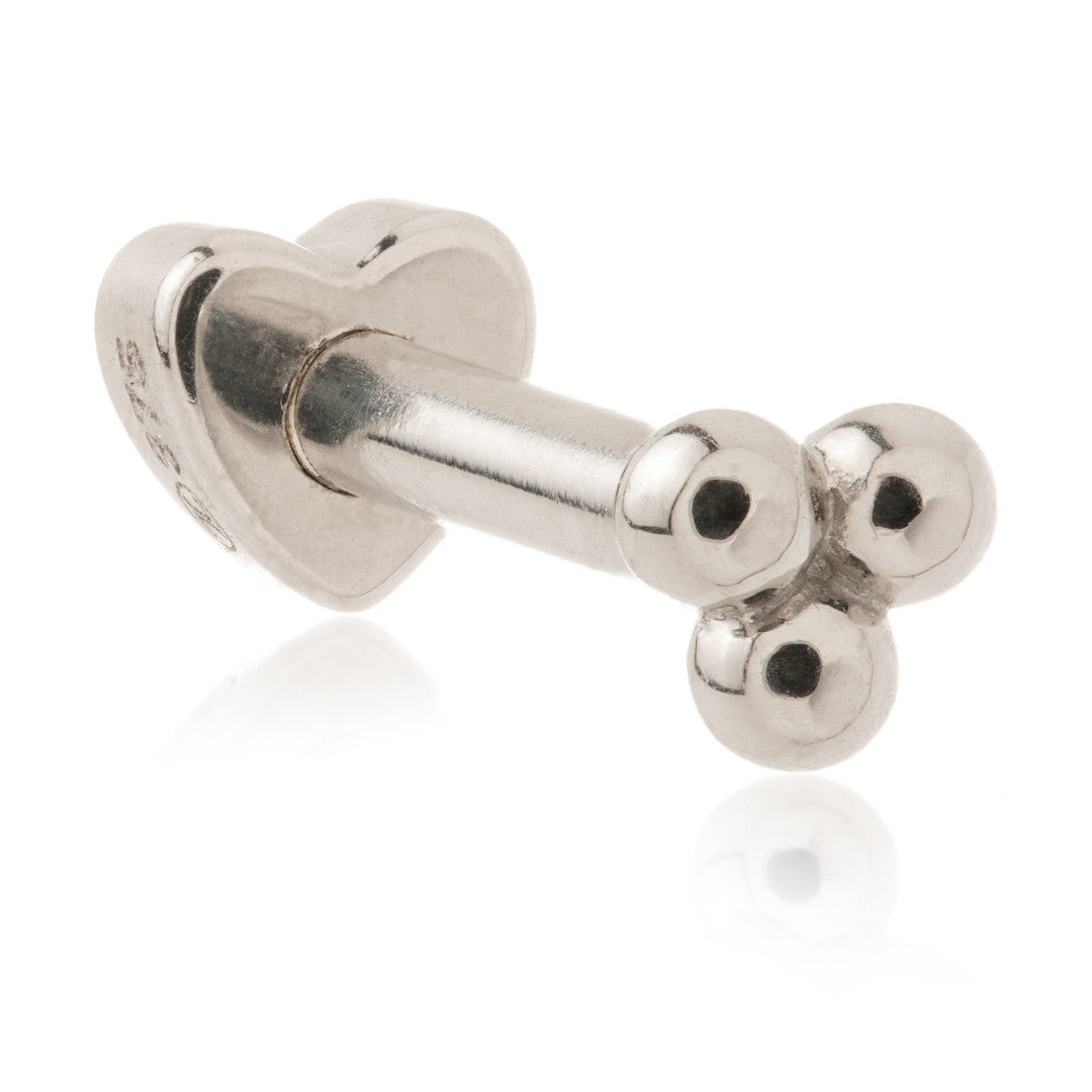 TISH LYON® 9ct Fixed Trinity Dot Microbar with Screw on Heart Back Gauge: 1.2mm Size: 6mm / 8mm Attachment Size: 3mm Gold Colour: Y / W