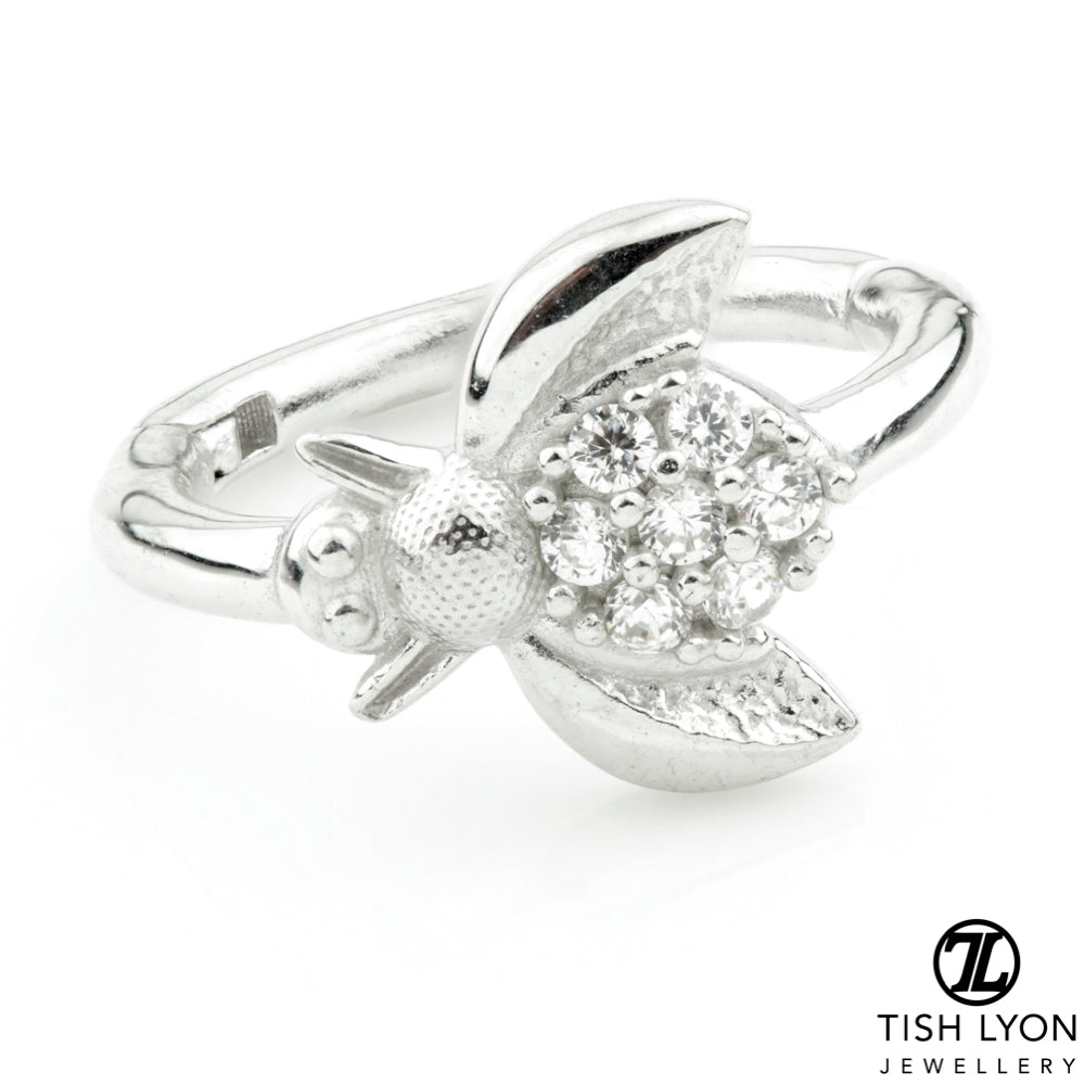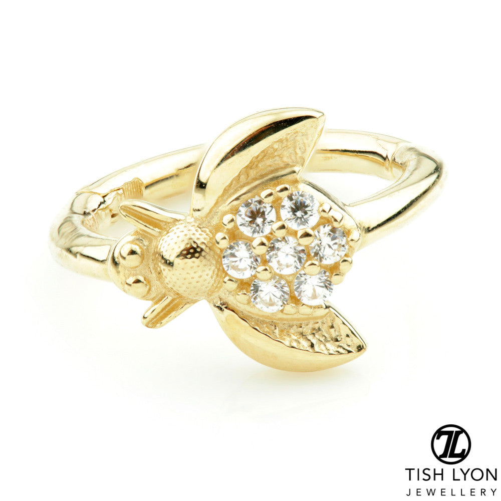 TISH LYON® - Jewelled Bee Hinge Segment Ring 9ct or 14ct Yellow or White Gold CZ Gems: 1mm x 7 Gauge: 1.2mm Inner Diameter: 8mm For Nose, Cartilage, 2nd Lobe, etc Be gentle and do not over twist as this could pull the design out of shape