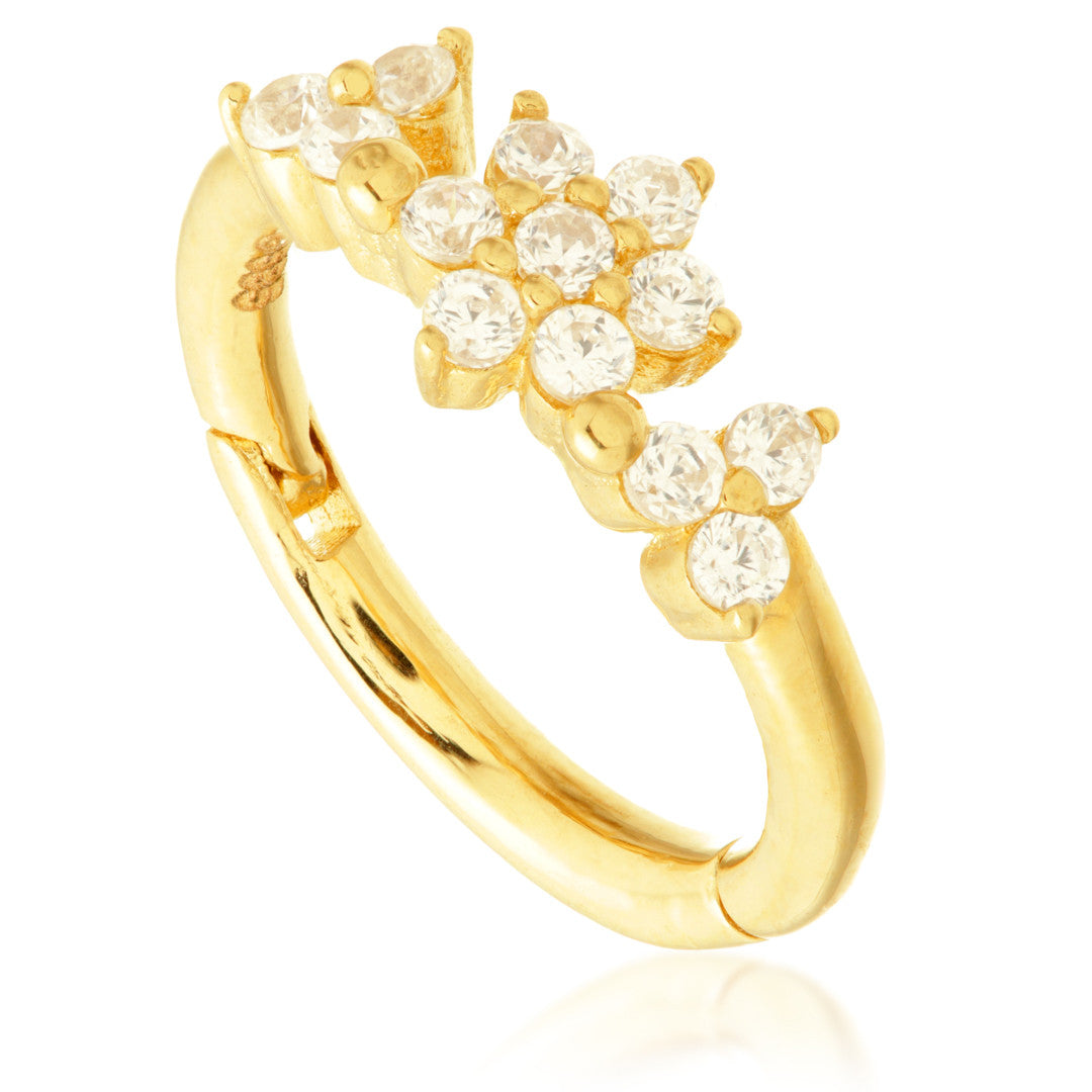 TL - Gold Jewelled Flower With Double Trinity Hinge Ring