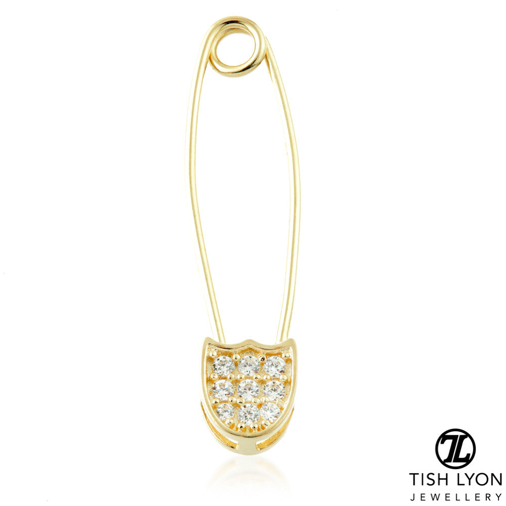 TISH LYON® - Pavé Jewelled Safety Pin 14ct Yellow Gold Gauge: 0.8mm Weight: 0.48gms CZ 1.1x9 For Cartilage, Lobe, Second Lobe, etc