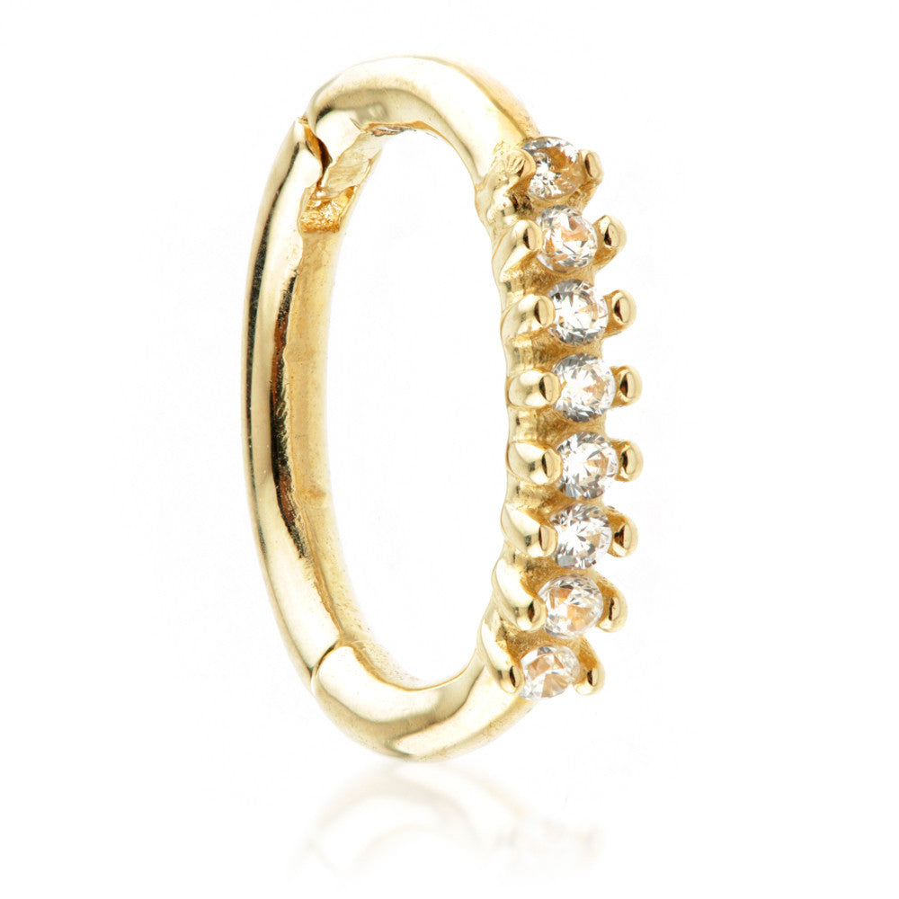 TISH LYON® - Prong CZ Hinge Segment Ring 9ct or 14ct Yellow or White Gold Segment Ring Size: 1.2mm x 8mm Weight: 0.41gms For Septum, Cartilage, Tragus, etc Suitable for initial piercing