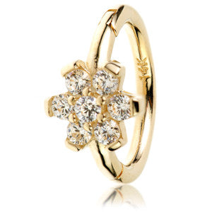 TISH LYON® - Gem Flower Hinge Segment Ring 9ct or 14ct Yellow Gold REDUCED (price already discounted) CZ Crystal Gems Size: 1.2mm x 8mm For Nose, Cartilage, Tragus, etc 14K Suitable for initial piercing Laser Mark - TL