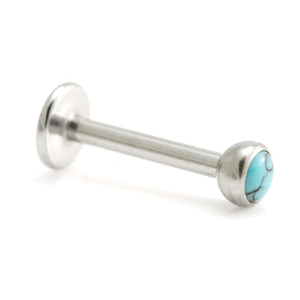 Turquoise Stone Gem Ball (dyed howlite) on 316L Steel Micro Labret Sizes: 1.2mm x 6mm, 8mm, 10mm Ball Size: 3mm