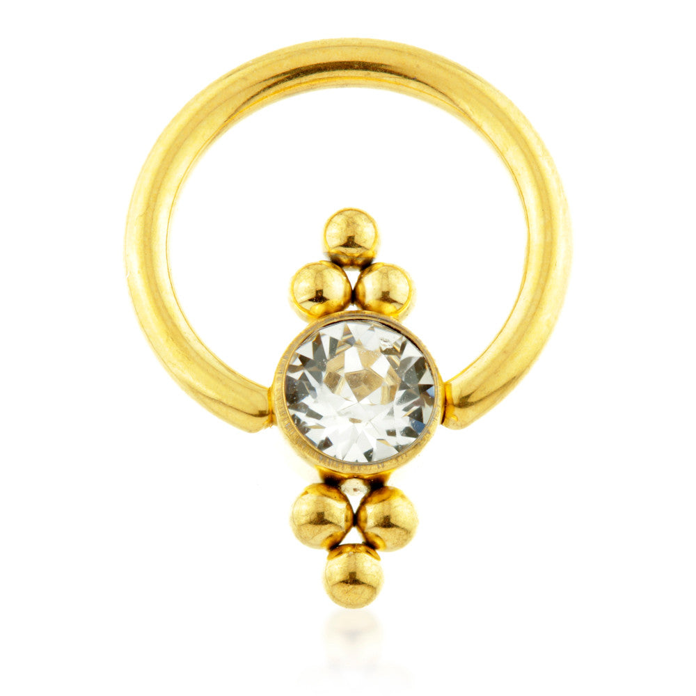 Yellow Gold Ti BCR with Double Tri Dot Gem Flat Disk