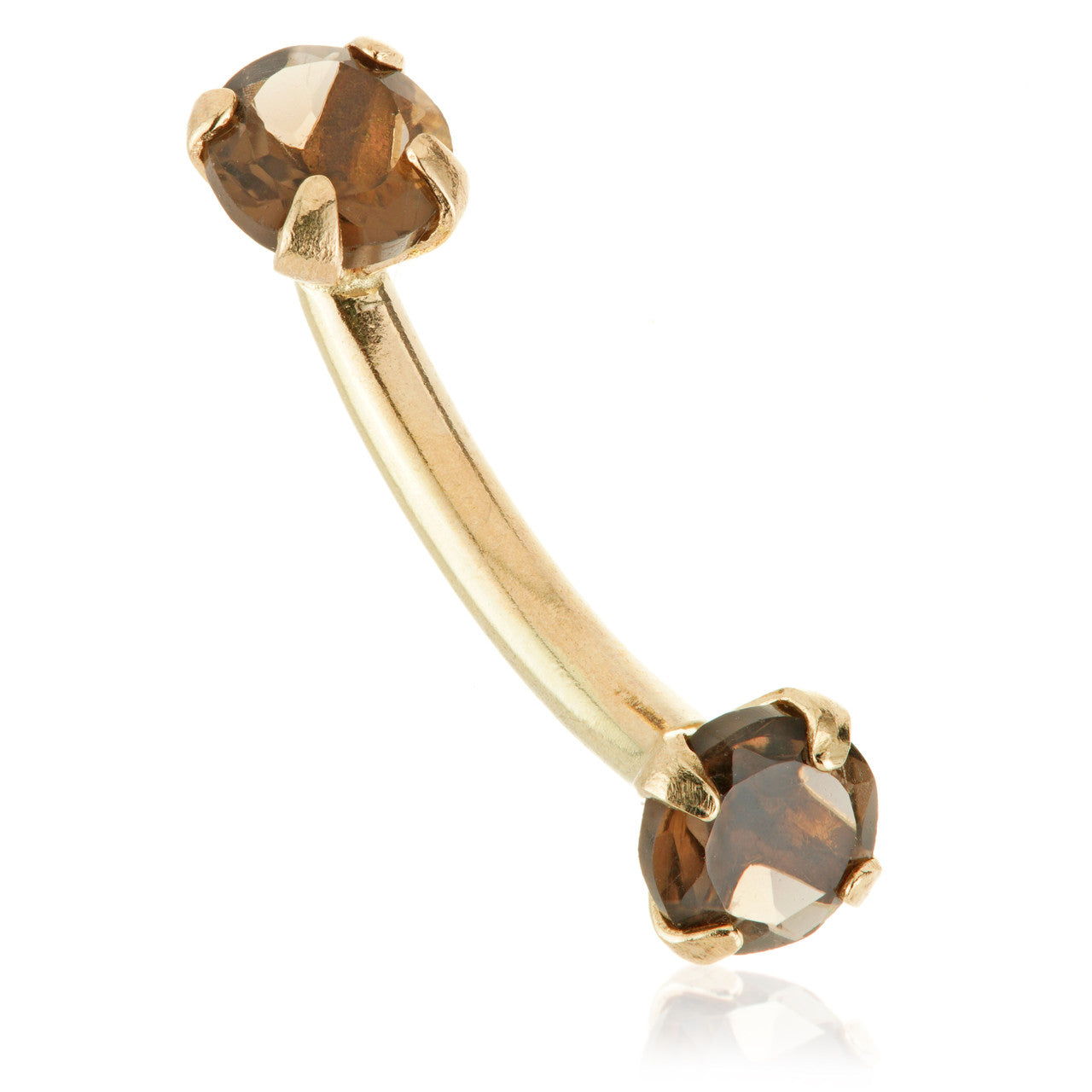 TL - 14ct Gold Double Smokey Quartz Prong Set Rook Bar