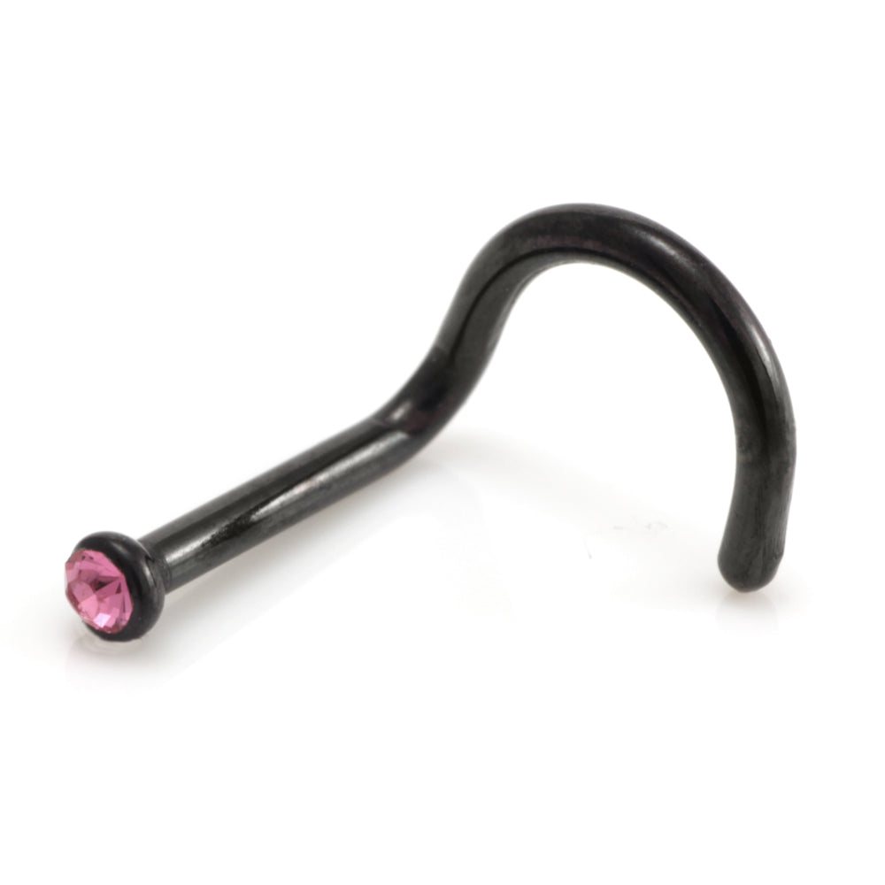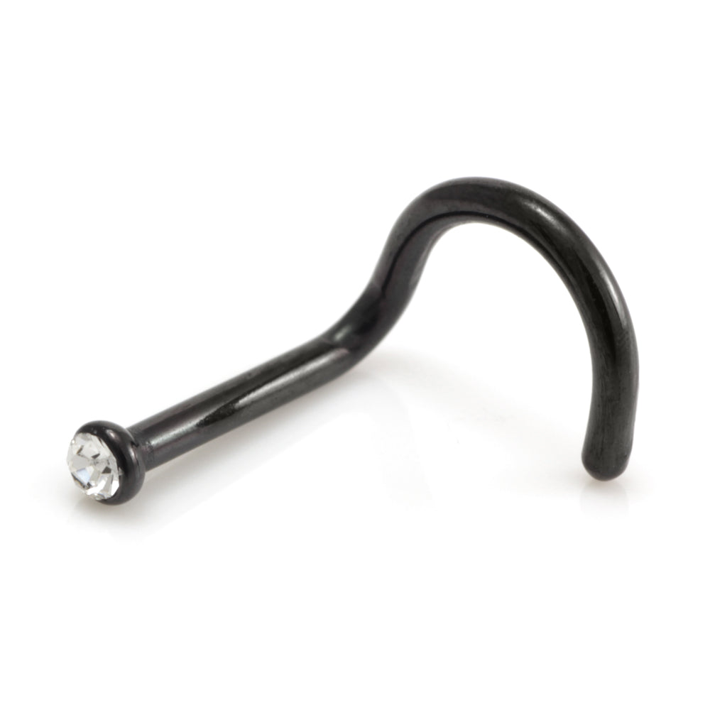 Evil Black Gem Nose Stud Gauge: 1mm or 0.8mm Swarovski Gem Colour: Crystal / AB / Lt Rose Gem Size: 2.5mm Medical Grade Titanium 6Al-4VEli ASTM:F-136