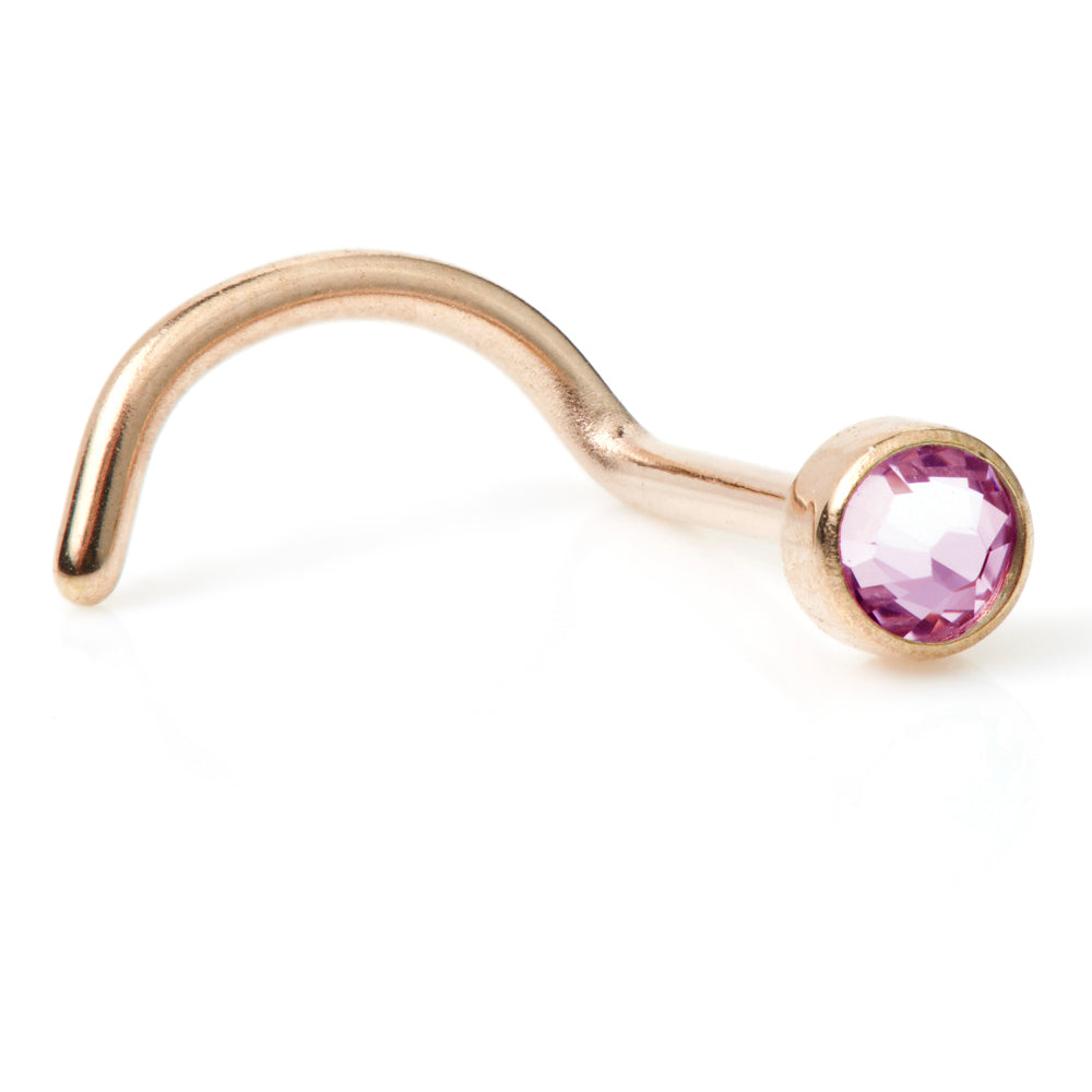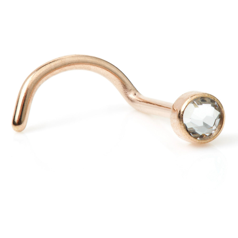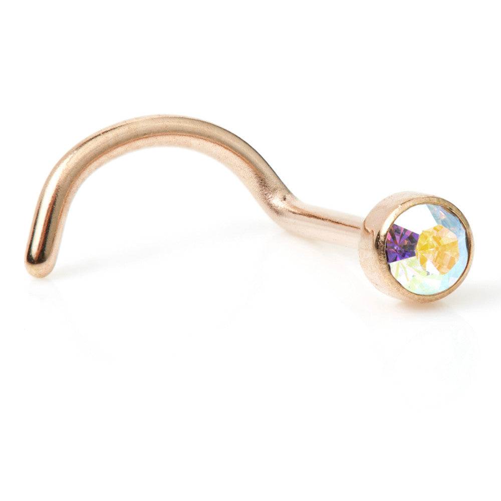 Rose Gold PVD on Titanium Gem Disk Nose Stud Gauge: 1mm or 0.8mm Gem Size: 2.5mm Gem Colour: Crystal, AB, Lt Rose Medical Grade Titanium 6Al-4VEli ASTM:F-136