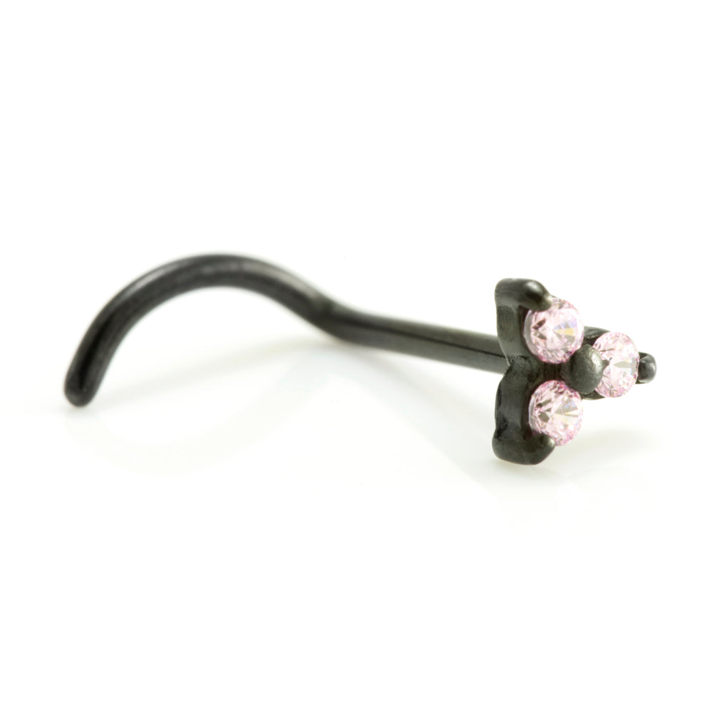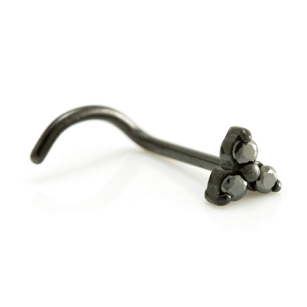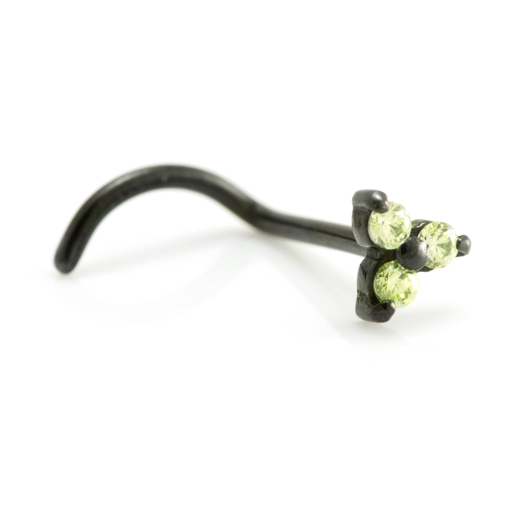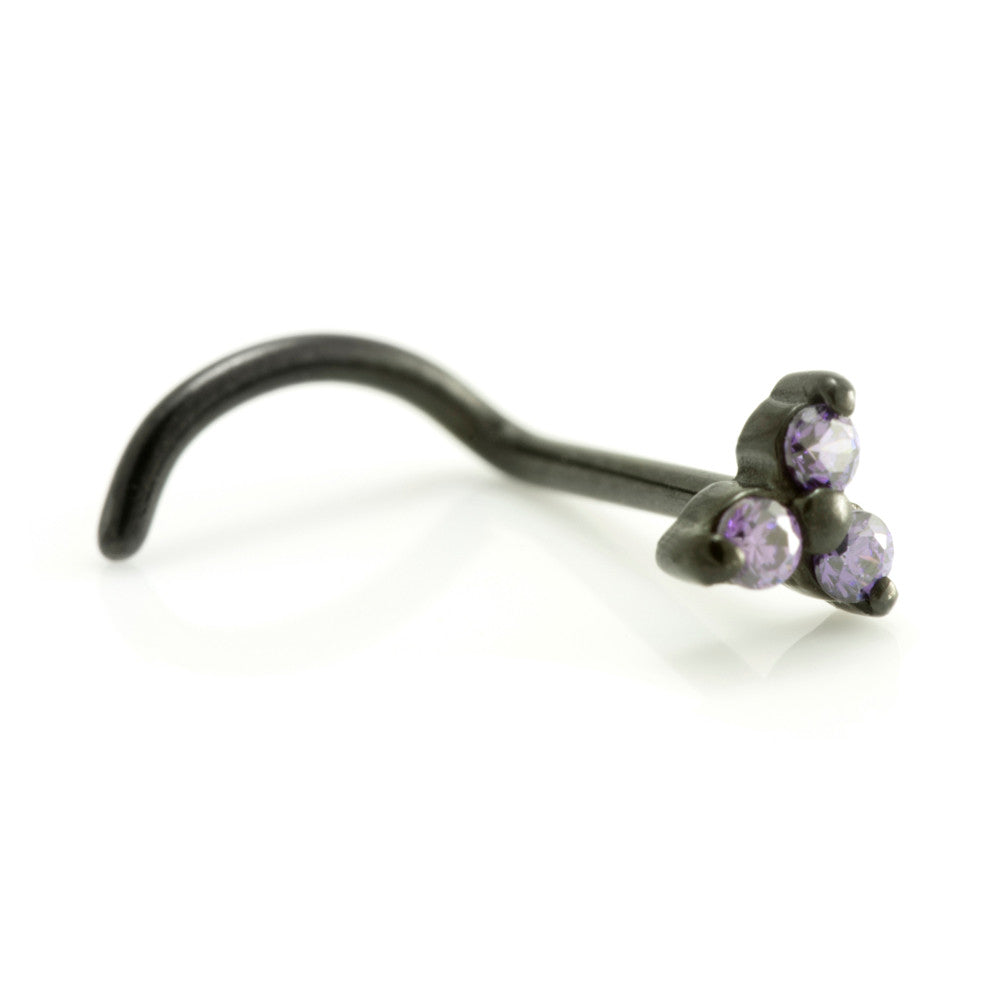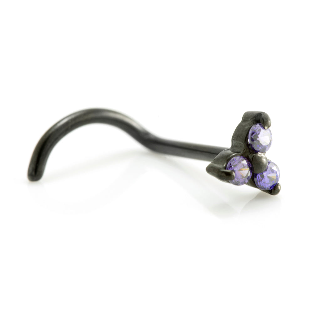 PVD Black on 316L Steel Trinity Nose Stud Crystal, Violet, Jet, Peridot, Lt Rose, Amethyst Gauge: 0.8mm Swarovski Crystal Gem Stones