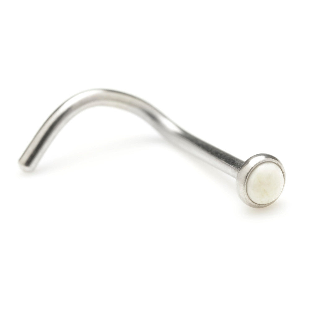 Steel Nose Stud with L Shape Bend White Howlite Cabochon Stone Gauge: 0.8mm