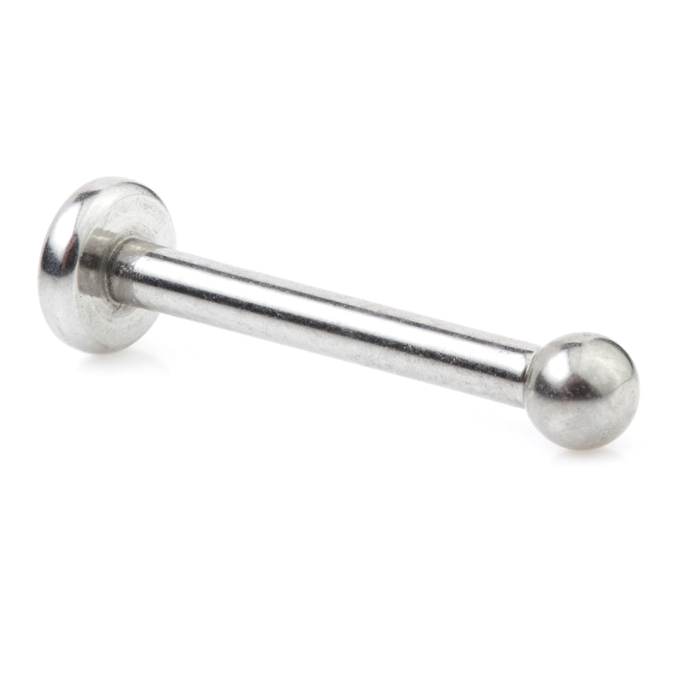 Threadless Titanium Labret with Pop in Plain Ball Gauge: 0.8mm / 1.0mm / 1.2mm / 1.6mm (threadless pin on ball) Labret Sizes: 5/6/7/8/9/10/12mm Ball Sizes: 2mm, 2.5mm, 3mm Base Plate Size: 4mm Medical Grade Titanium 6Al-4VEli ASTM:F-136