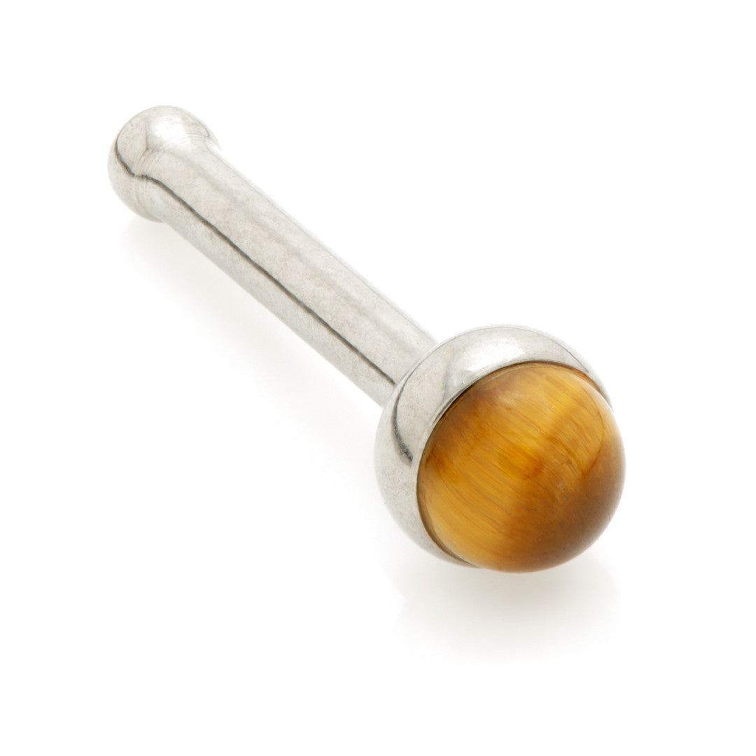 Ti Straight Ball Back Nose Stud with Tiger Eye Stone