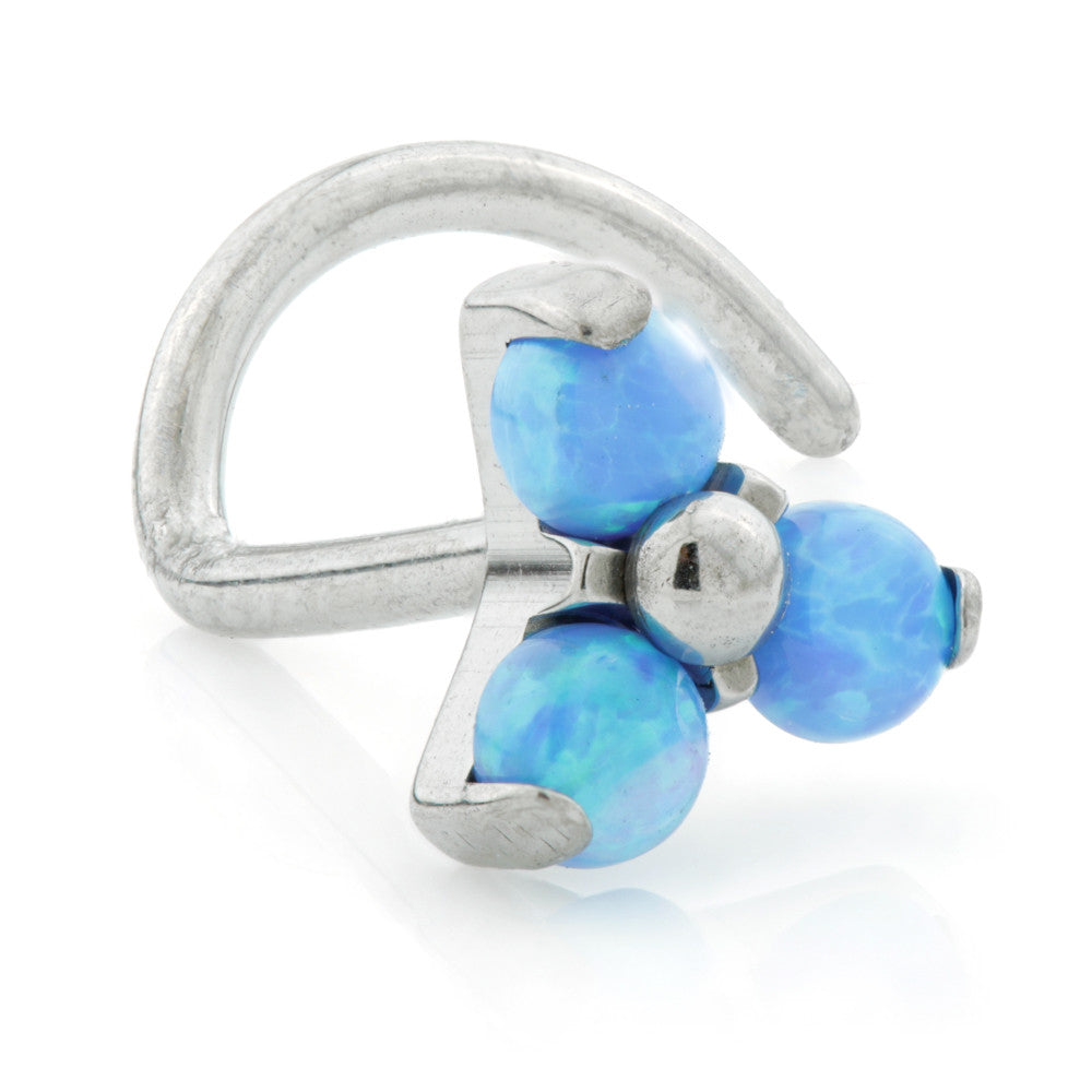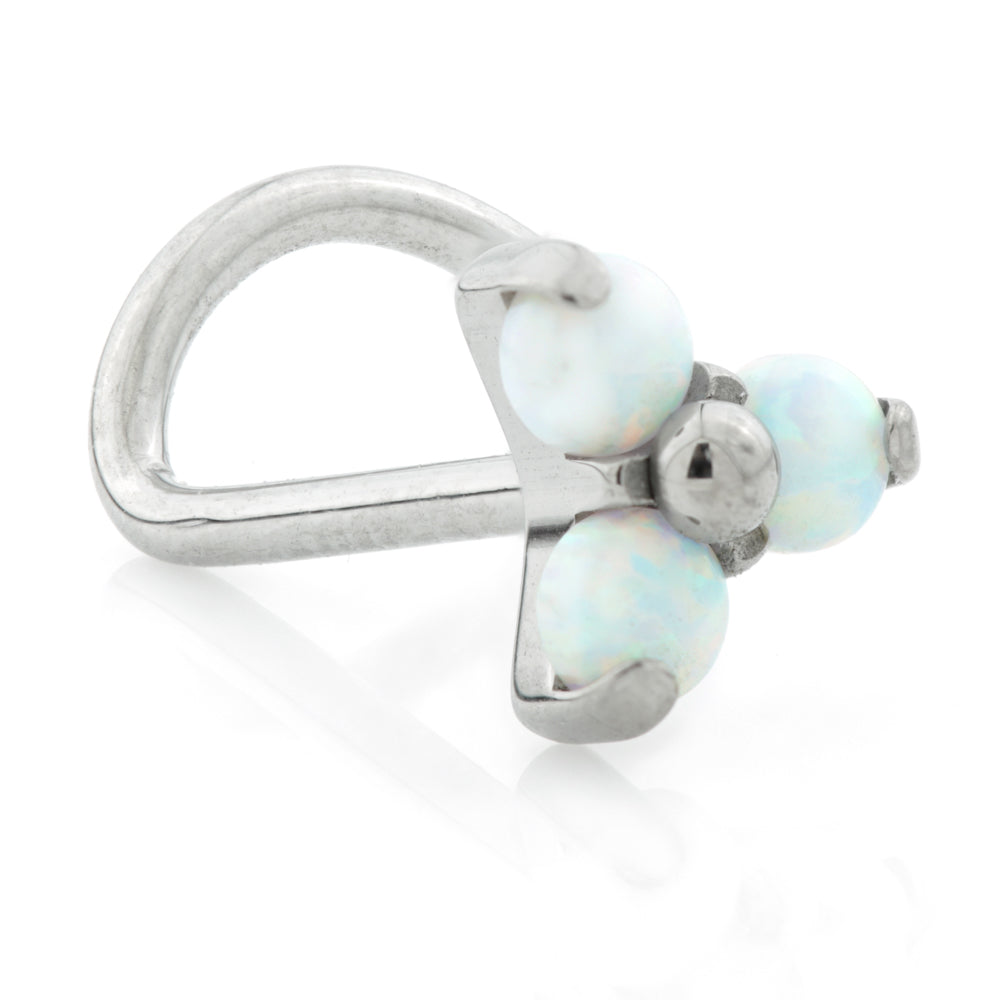 Ti Trinity Opal Nose Stud Gauge: 0.8mm Length: 6mm Trinity Size: 5mm Opal Colour: White or Blue Medical Grade Titanium 6Al-4VEli ASTM:F-136