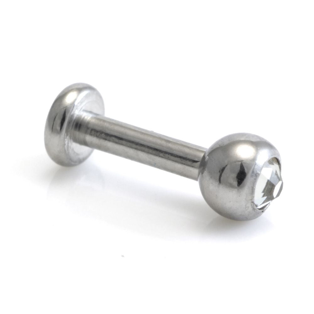 Titanium External Threaded Discount Micro Gem Labrets Gauge: 1.2mmBase Size: 3mmLabret Size: 8mmAttachment Size: 2.5mm/3mmGem Colour: CRCZ Gem Stones Medical Grade Titanium 6Al-4VEli ASTM:F-136