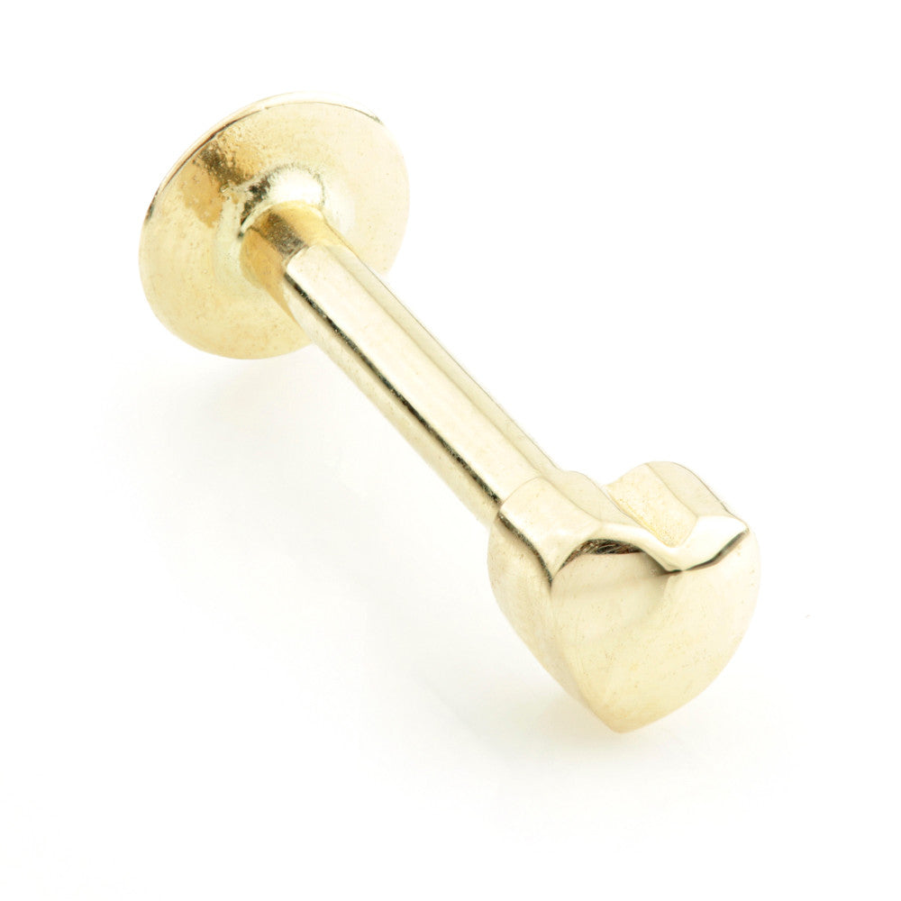 TISH LYON® - 9ct Gold Heart Labret Gauge: 1.2mm Size: 8mm Attachment Size: 3mm Base Plate Diameter: 3.8mm (0.28mm thickness) Gold Colour: Yellow/White Suitable for initial piercing