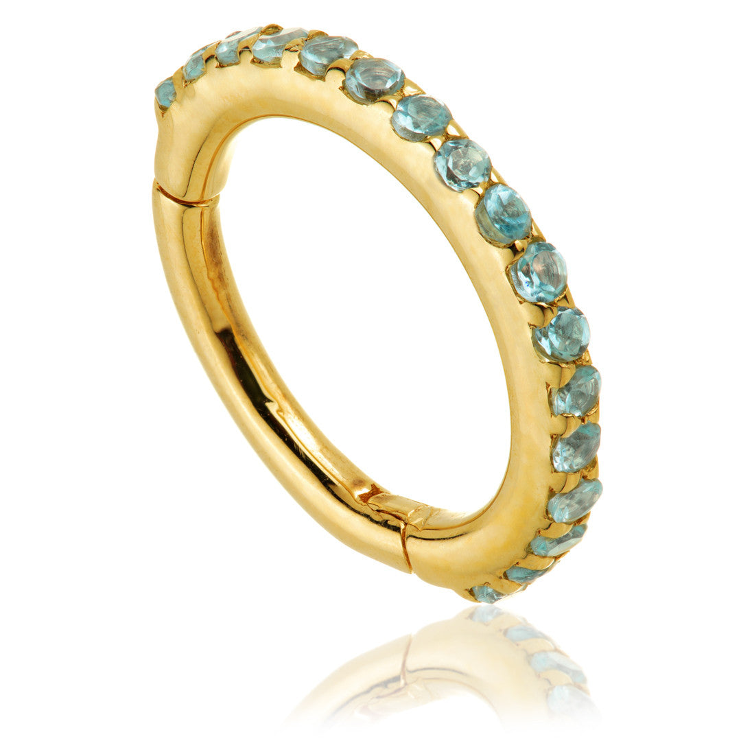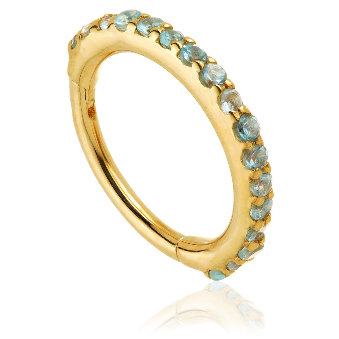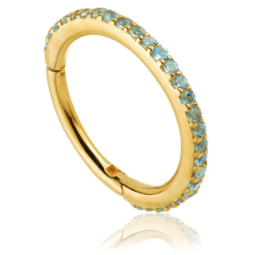 TL - Gold Swiss Blue Topaz Pave Eternity Hinge Ring