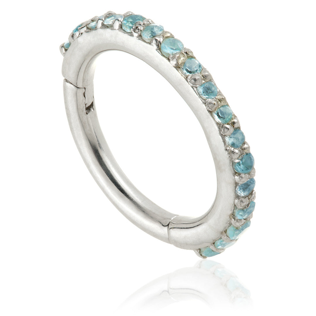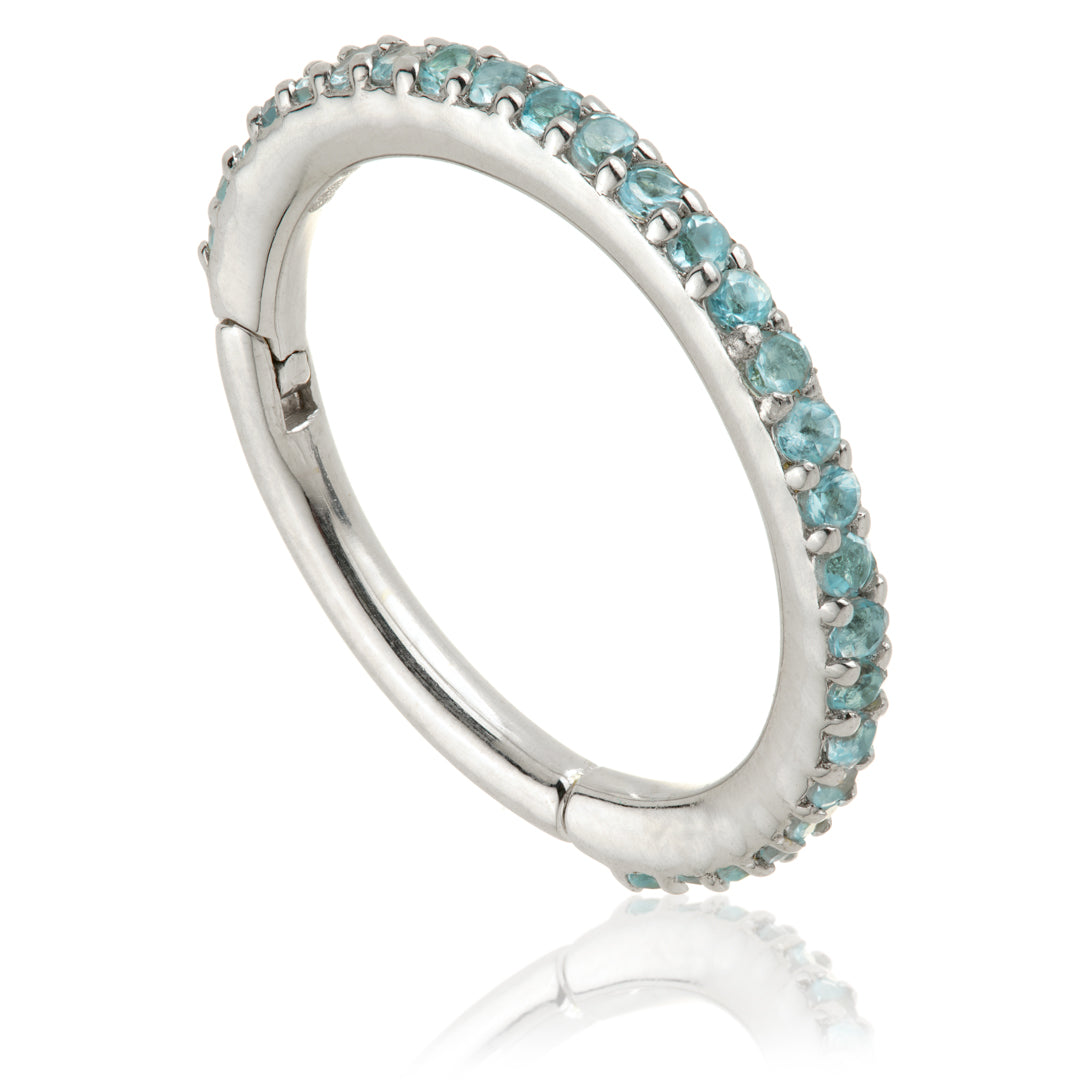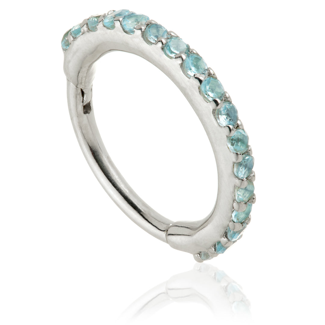 TL - Gold Swiss Blue Topaz Pave Eternity Hinge Ring