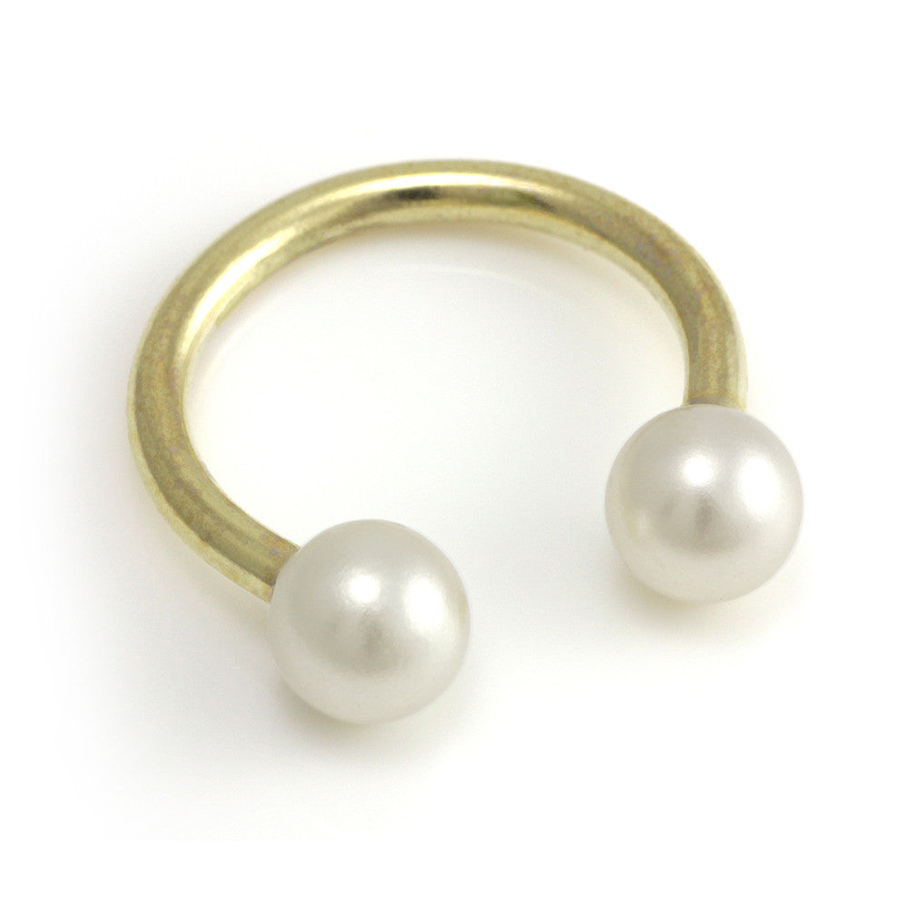 Gold PVD Steel CBB with Pearl Ends Sizes: 1.2mm x 6/8/10/12mm, 1.6mm x 8/10/12/14/16mm
