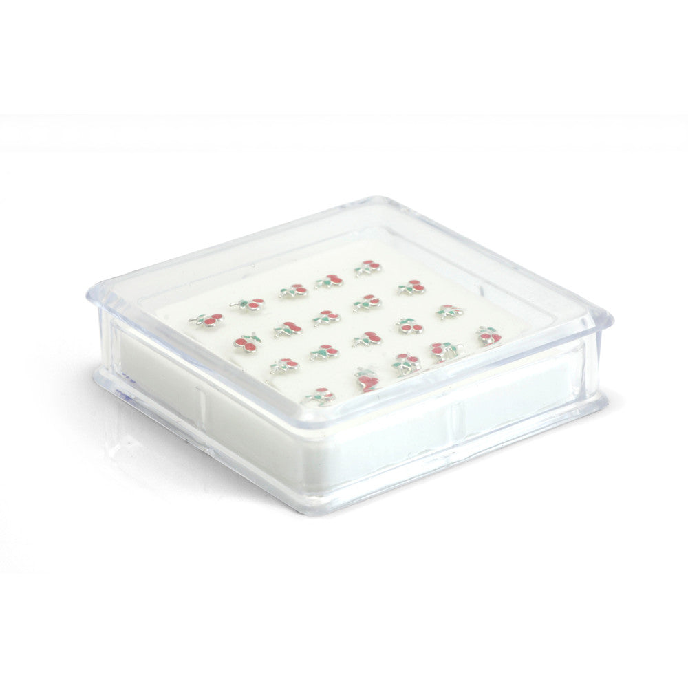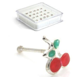 Cherry Nose Pins in Display Box Straight back with ball, Sterling Silver 925 Box of 20
