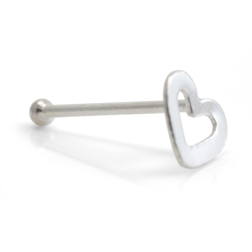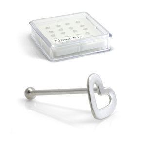 Silver Heart Nose Pins in Display Box Straight back with ball, Sterling Silver 925 Box of 20