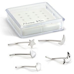 Tiny 925 Silver Shapes Nose Pins in Display Box Straight back with L shape back Box of 20