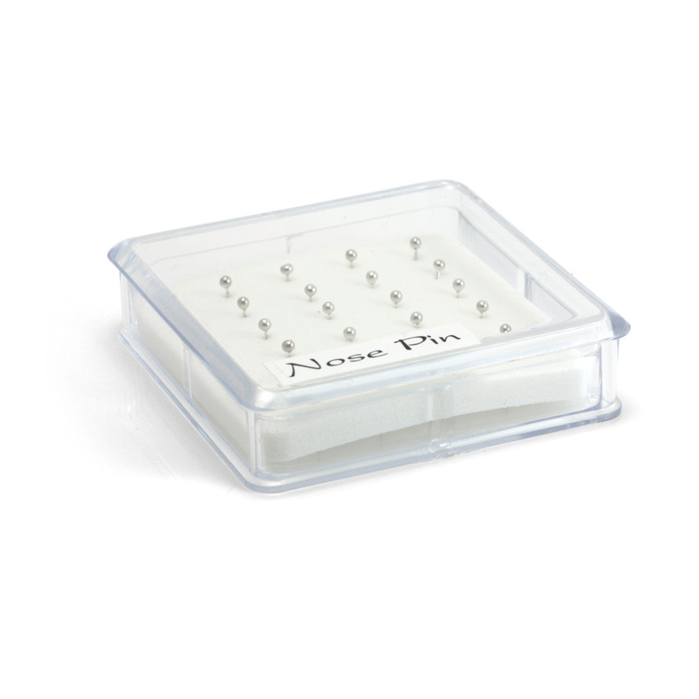 Tiny 925 Silver Ball Nose Pins in Display Box Straight back with ball Box of 20