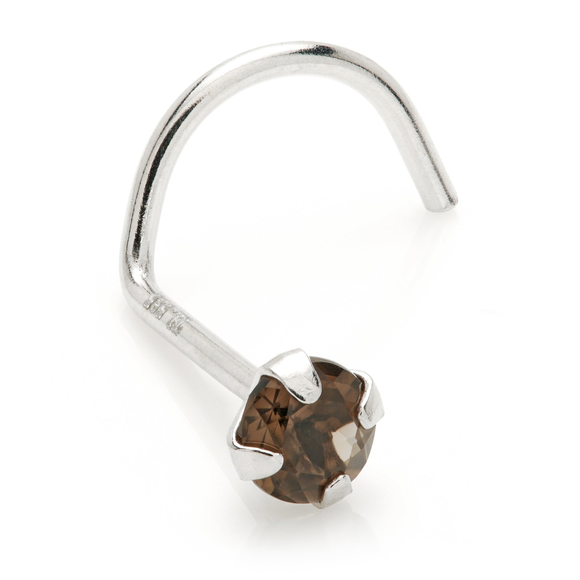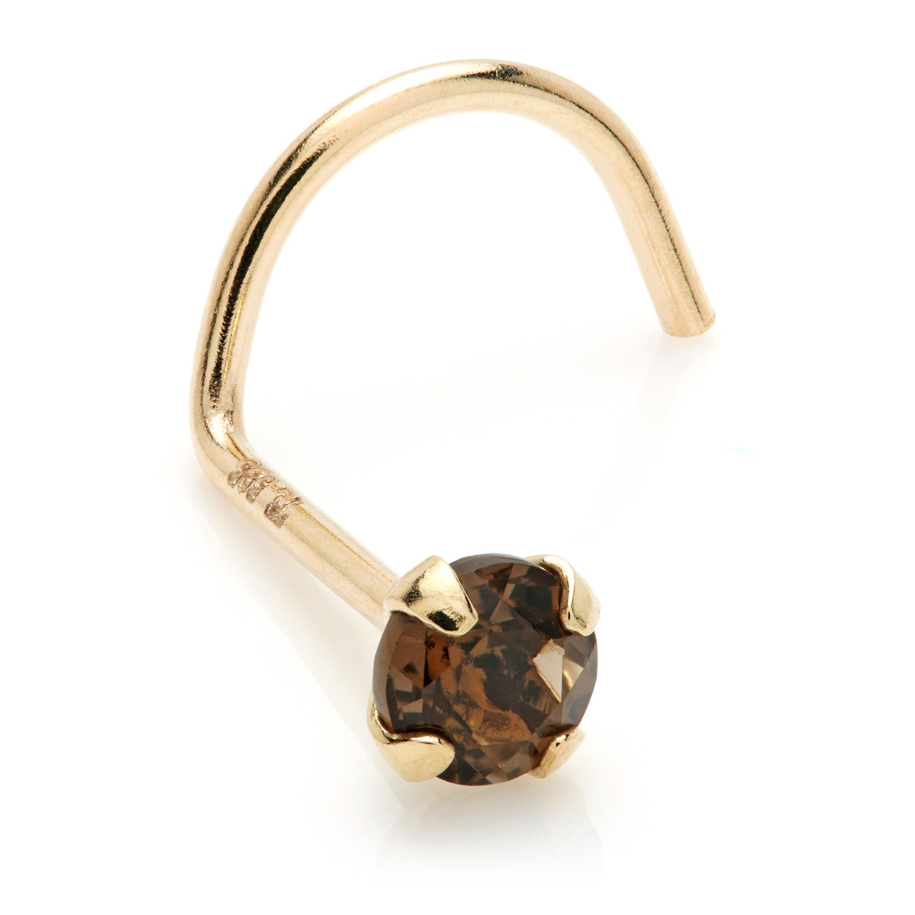TL - 14ct Gold Prong Set Smokey Quartz Nose Stud