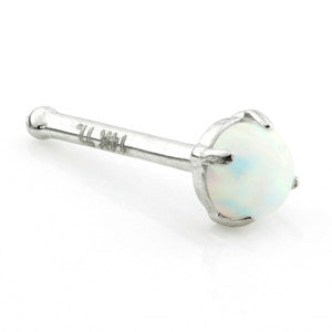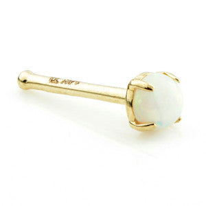TISH LYON® 14ct Gold Opal Gem Nose Stud Stud thickness: 0.8mm White Opal: 3mm Nose Bar: 8mm Ball End: 1mm Gold Colour: Yellow or White Laser Mark - 14K TL