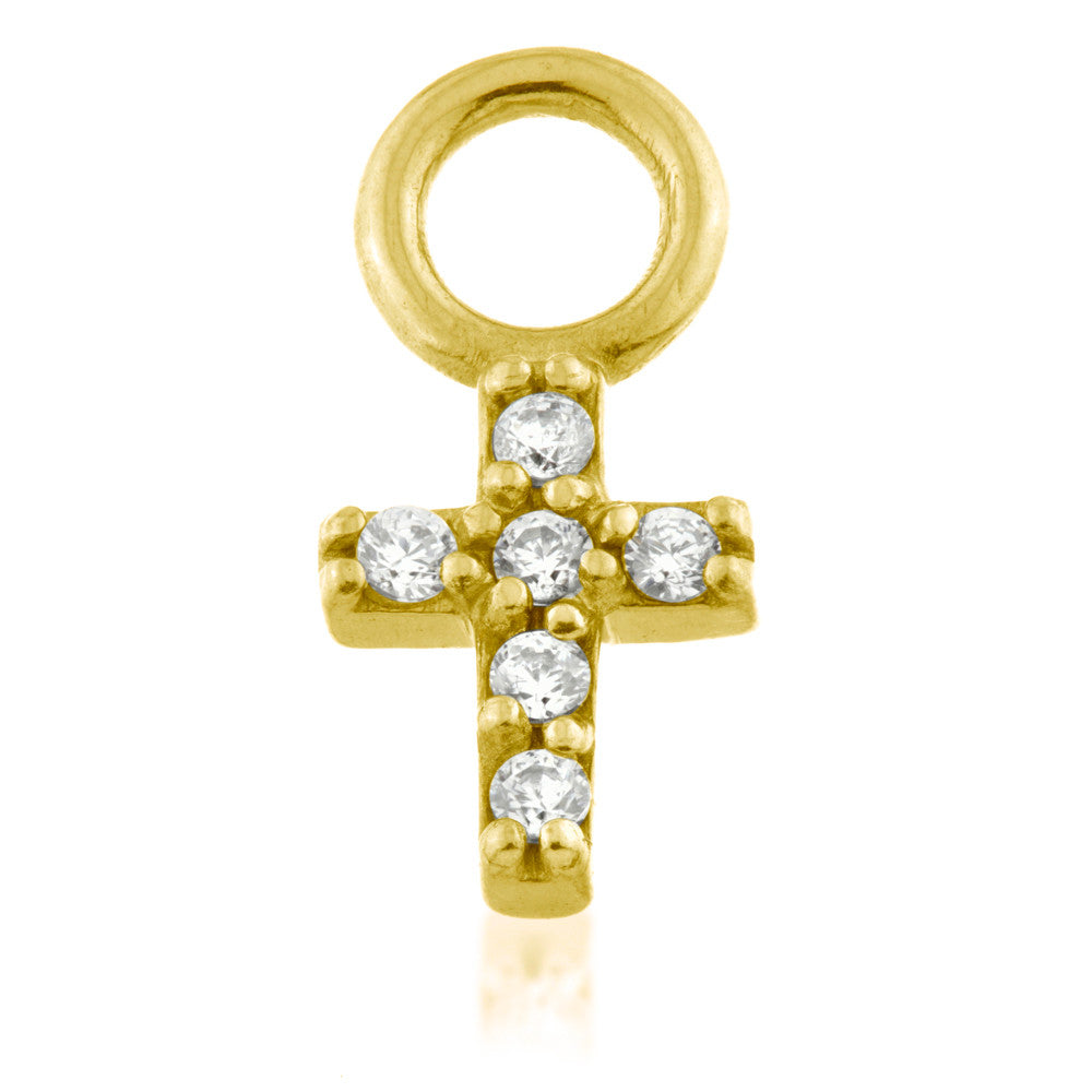 Gold PVD on Steel Crystal Cross Charm Attachment Will fit on Hinge Segment Ring or BCR Size: 4mm x 5mm