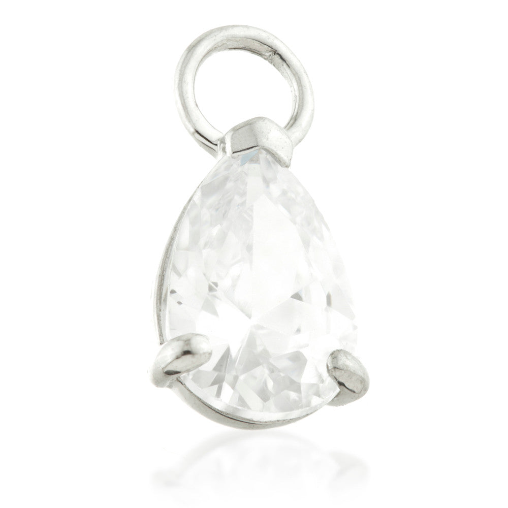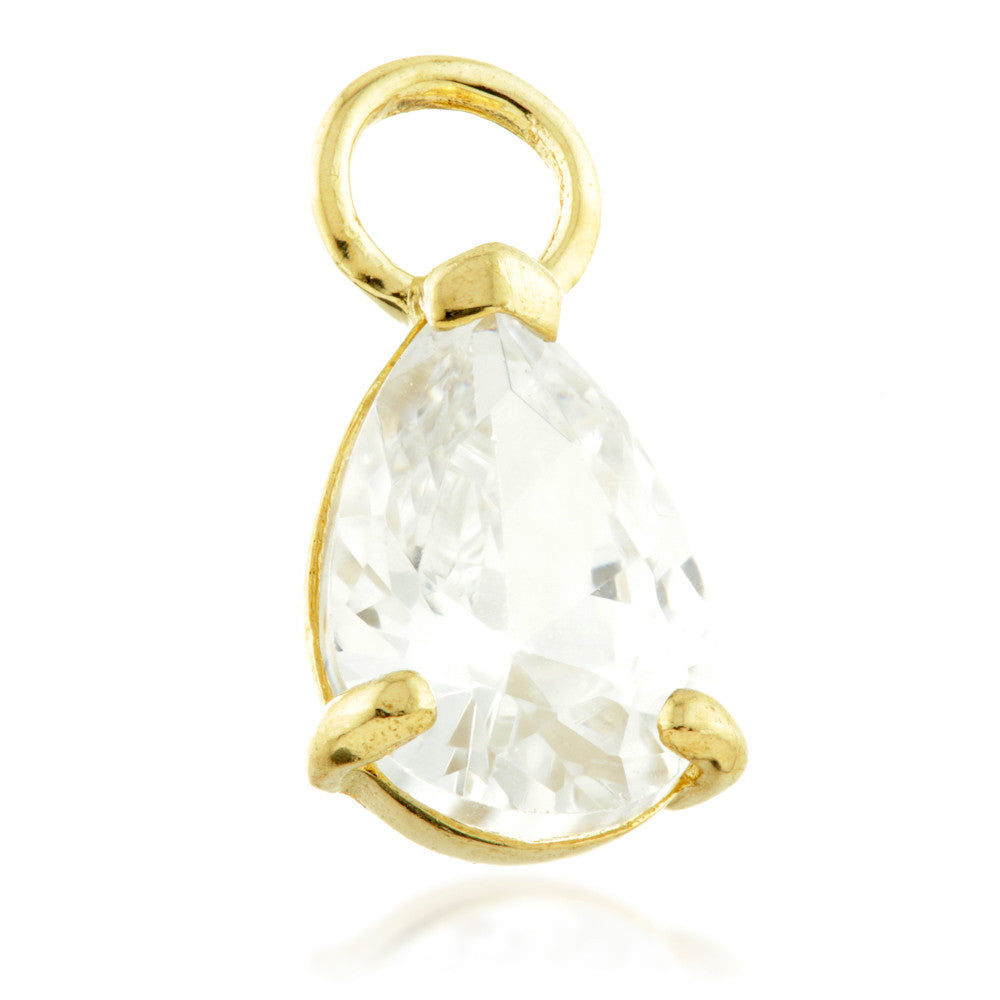TISH LYON® 9ct Gold CZ Tear Charm for Hinge Rings Colour: Yellow or White Size: 6mm x 4mm Weight: 0.45gms O-ring Inner Diameter: 2mm O-ring Gauge: 0.5mm Laser Mark