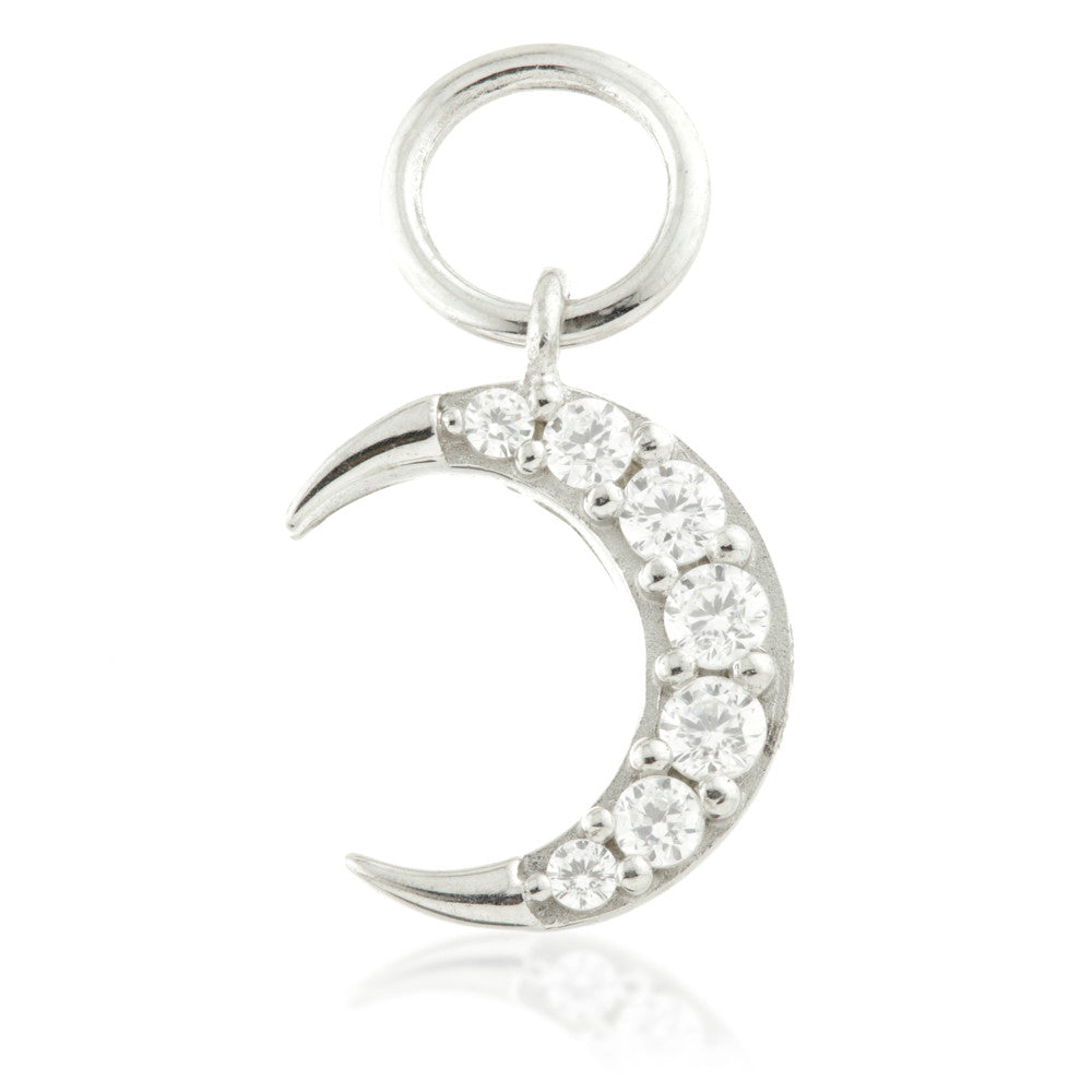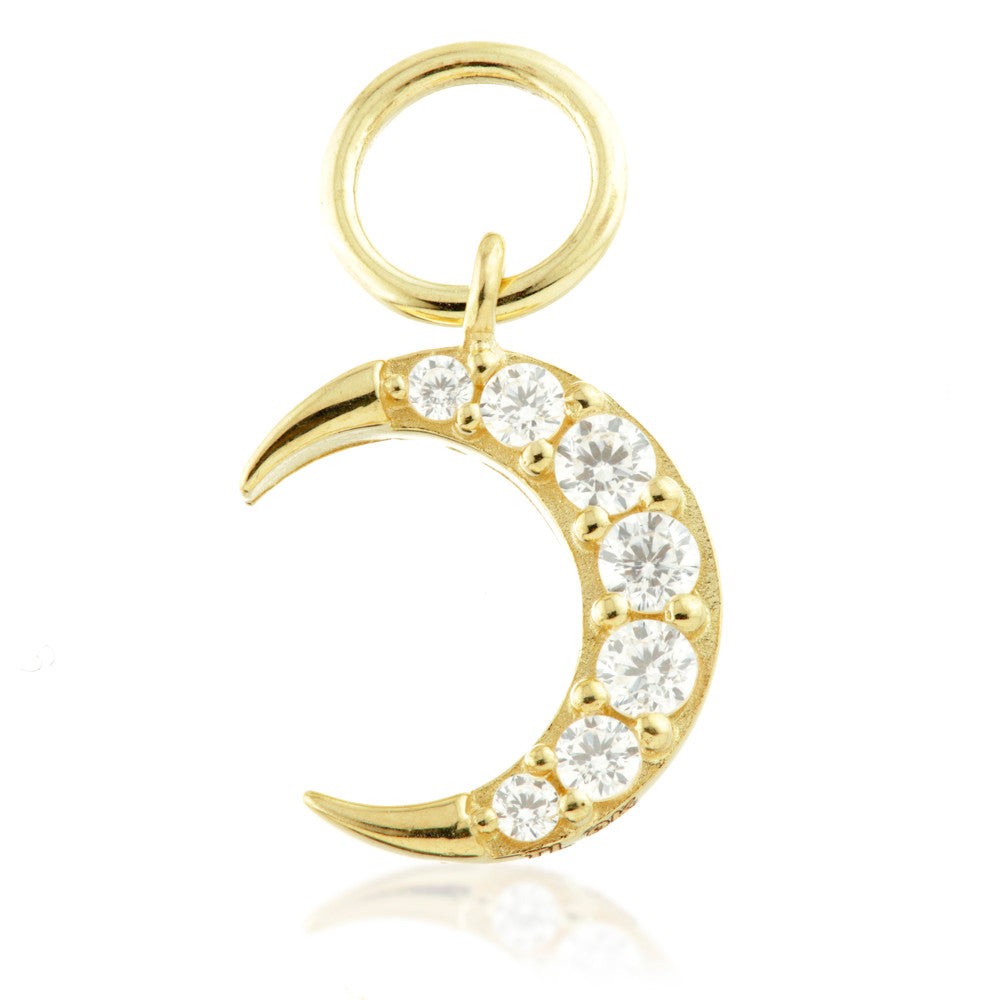 9 Carat Solid Gold Jewelled Moon Hoop Charm for Hinge Rings
