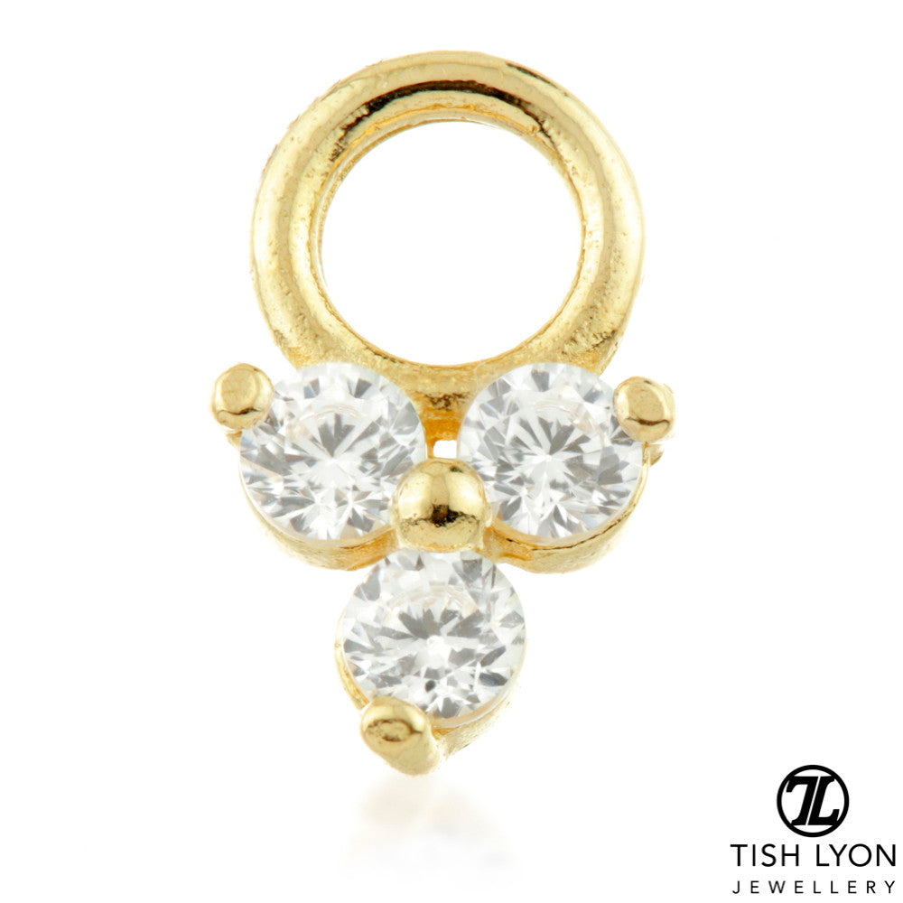 9 Carat Solid Gold Jewelled Trinity Hoop Charm for Hinge Segment Ring
