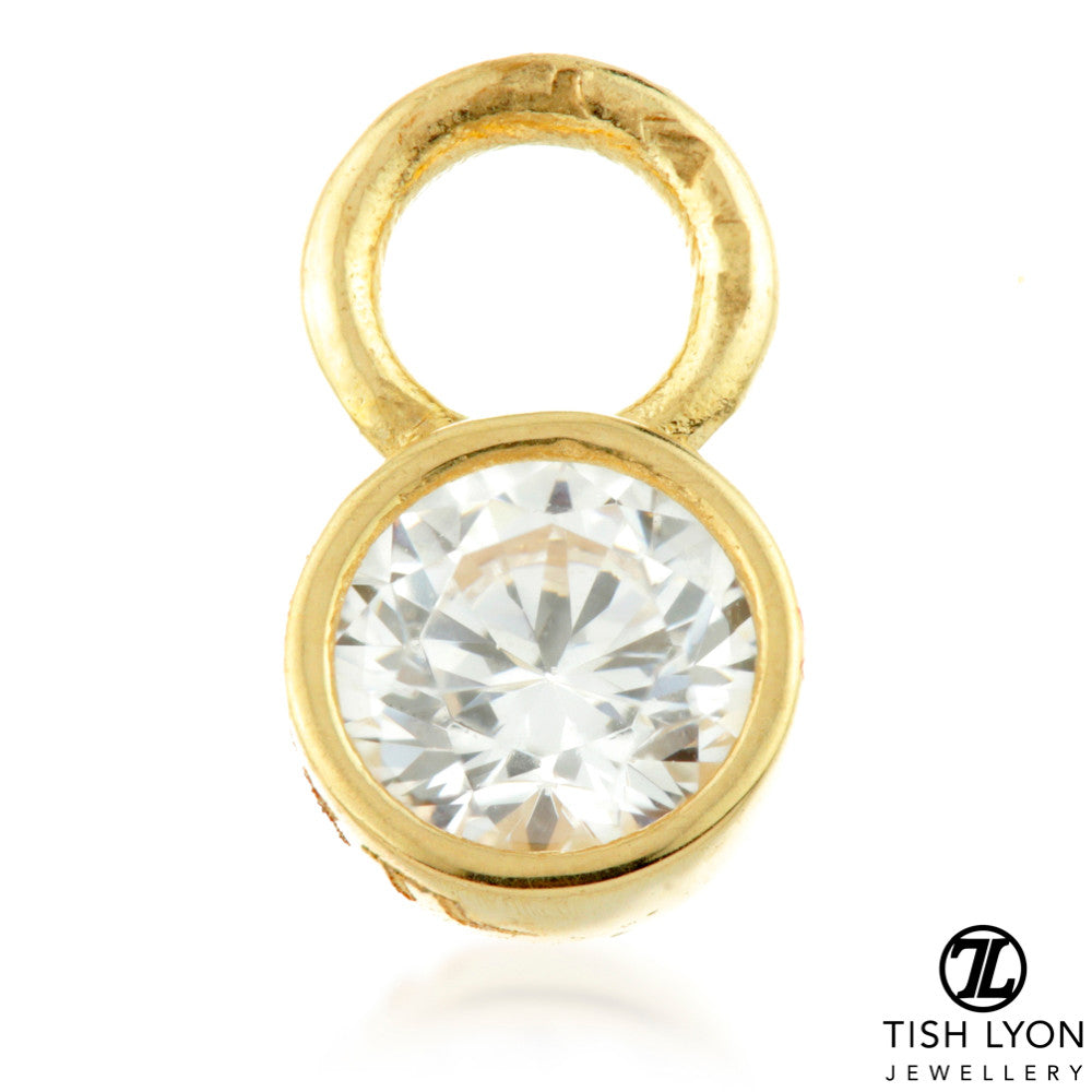 9 Carat Solid Gold Round CZ Hoop Charm for Hinge Segment Ring
