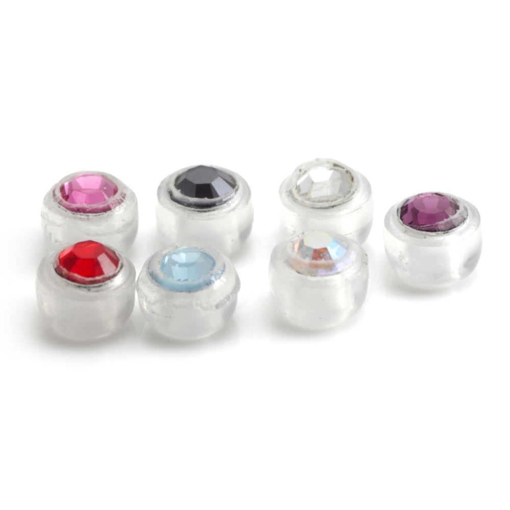 Bioflex Gem Ball. Black or Clear Bioflex only. Gem Colours: Crystal/AB, Crystal/Aqua/Light, Siam/Amethyst/Hematite Gauge: 1.2mm Ball Size: 3mm