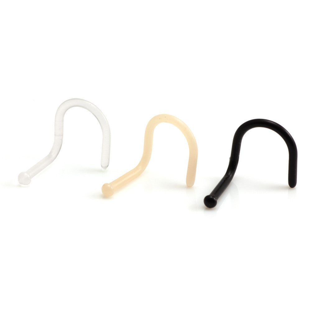 Bioflex with 'push fit twist - hide it' nose stud. Colours of Bioflex in black, clear or flesh. Can be autoclaved and used for initial piercing. Gauge: 1mm and 0.8mm. Ball size: 1.5mm or 2mm
