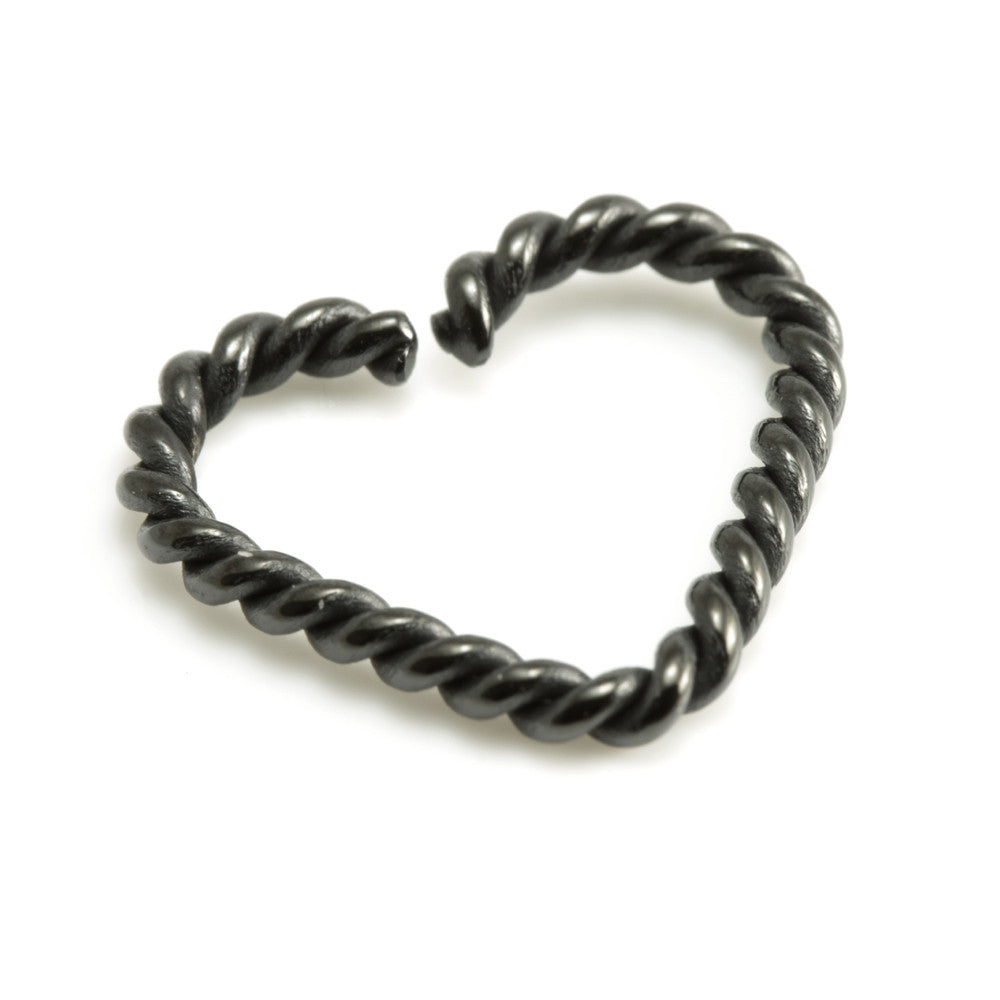 Surgical Steel on PVD Leaf Black Heart Ring Ideal for Helix, Tragus, etc. 1.2mm x 10mm