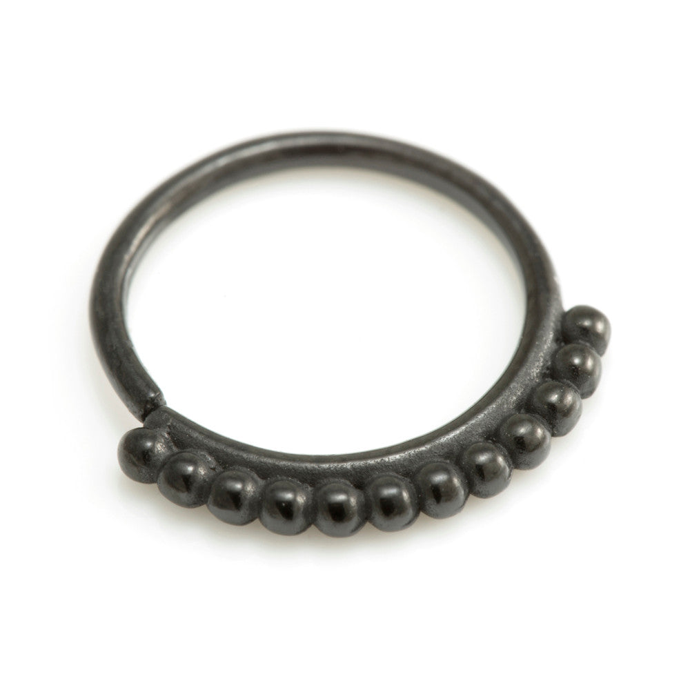 Black PVD Open by hand - Seamless Septum / Ear Rings in Bohemian designs. Made from cast steel - annealed for easy opening. Size: 0.8mm x 7mm or 8mm / 1mm x 7mm or 8mm / 1.2mm x 8mm or 10mm Can also be worn through tunnels