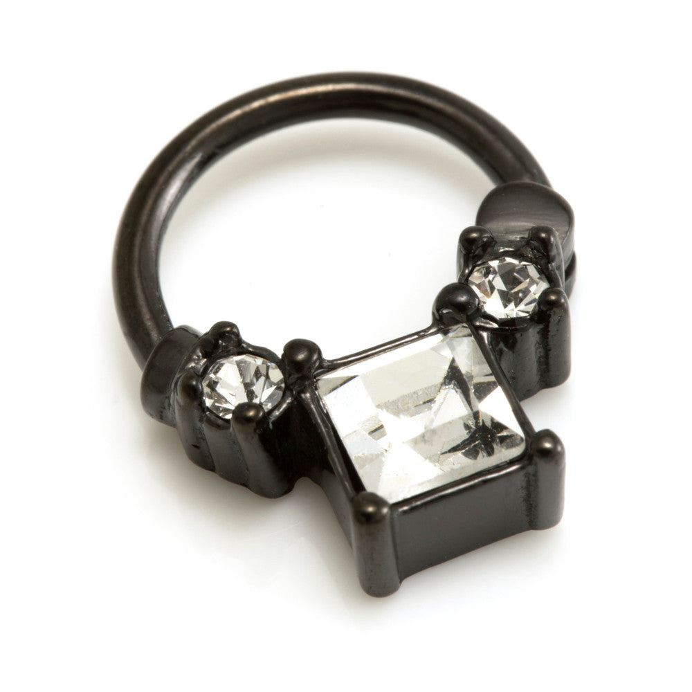 PVD Black 316L Surgical Steel Square Gem Hinged Ring Gauge: 1.2mm Size: 8mm Gem Colour: Crystal Gem Size: 2x5x2mm
